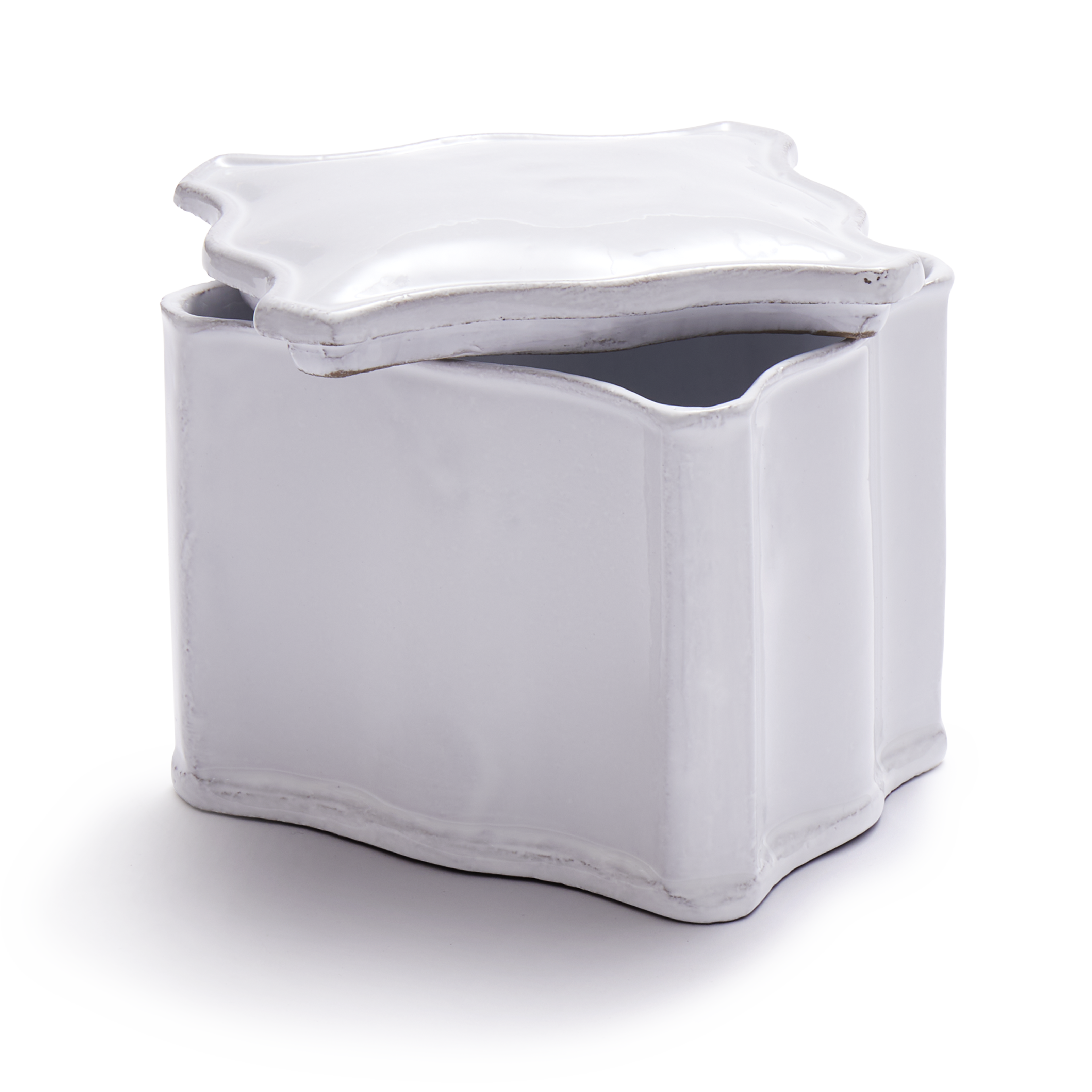 New to the Choosing Keeping assortment, this beautiful ceramic box is made by one of a few studios in central Paris still actively producing ceramic tableware using traditional 18th century methods. The design is inspired from eclectic antiques collected by company owners Benoit Astier de Villatte and Ivan Pericoli from flea markets and charity shops to give the pieces their signature wonky whimsical style - always featuring their signature milky white glaze over black terracotta.