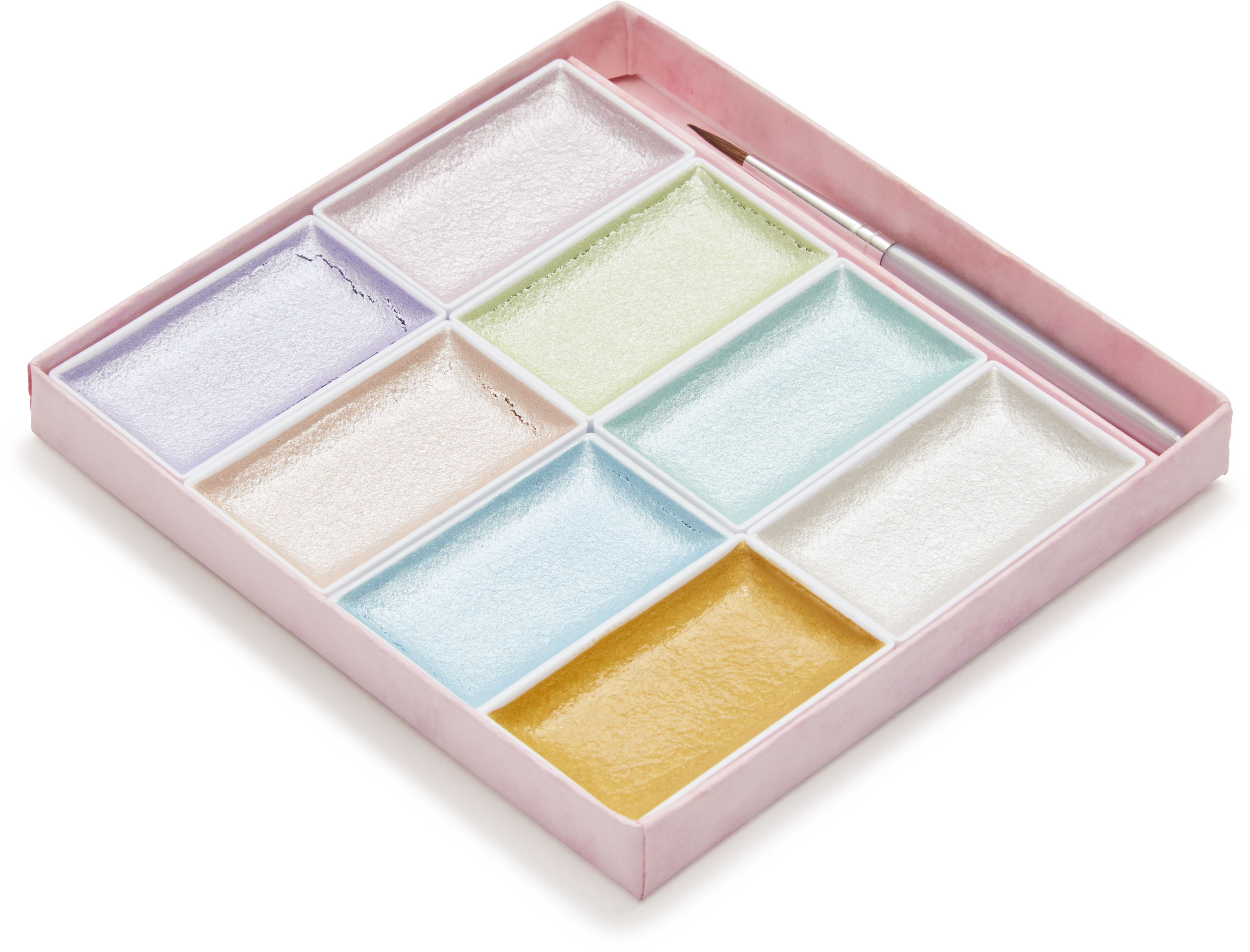 Enjoy 8 shades of Gansai in your art practicethe Japanese alter-ego to European watercolours - also similar to gouaches. These high quality paints, made in Japan by a 100 year old paint maker, can be used directly out of the box with a wet paintbrush - either thinly in translucent washes, or by layering for a bolder effect. These can also be used on darker paper bases.