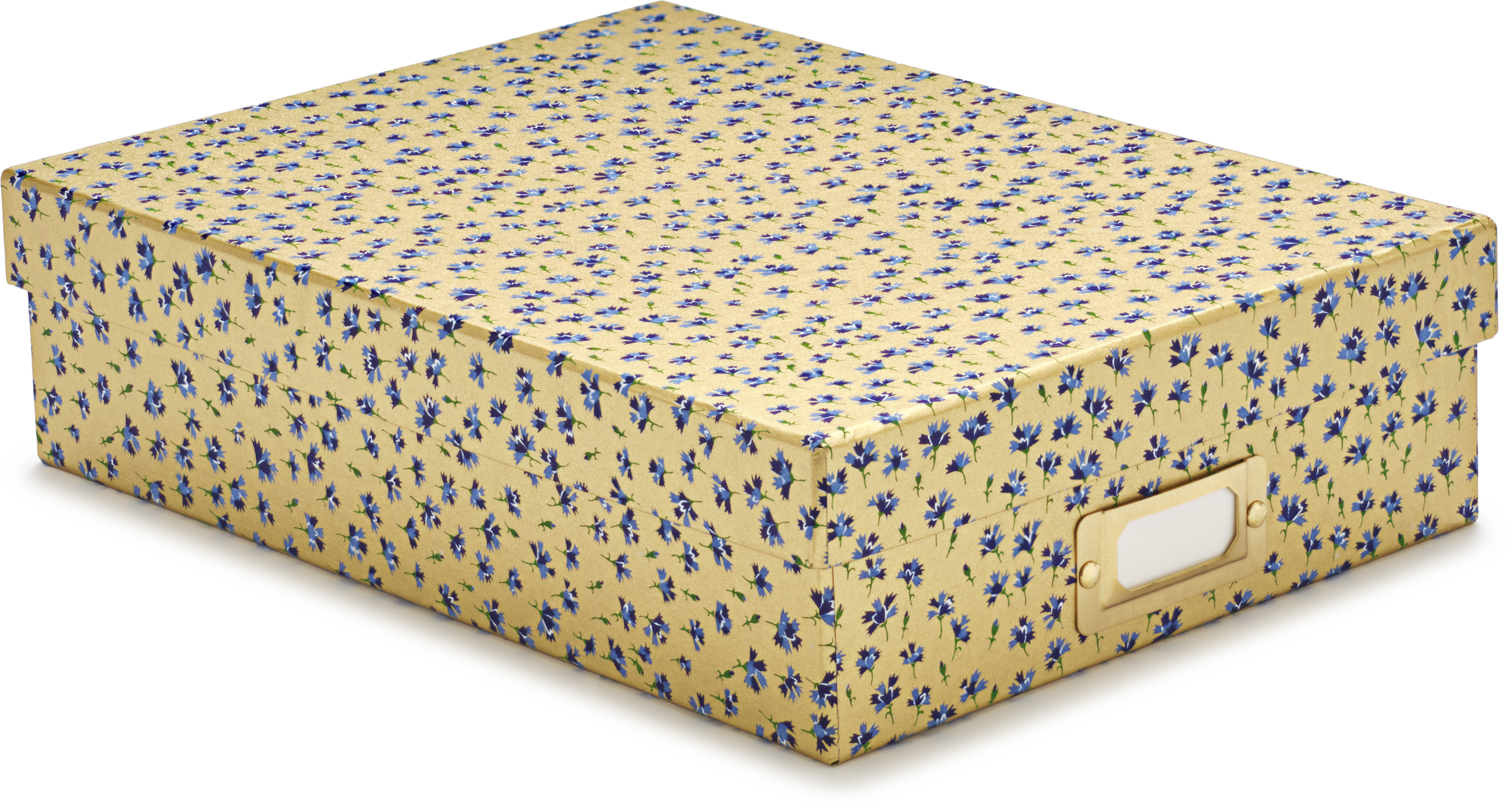Handmade archival box, with Japanese paper motifs, lined inside (with creme paper) and using hand silk screen paper to cover. There is also a brass label holder on each box to make note of its contents.