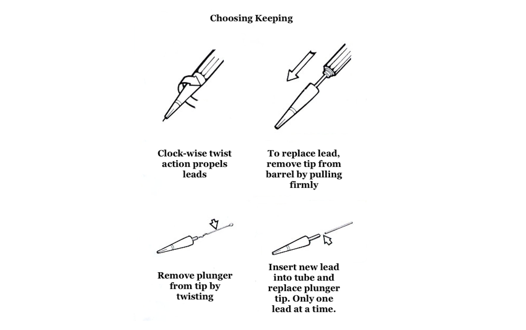 A very practical, twist-action propelling mechanism lead holder for any correction or casual notetaking. For coloured lead, a chunky 1.1mm lead size is ideal as the tips will not easily snap under pressure.