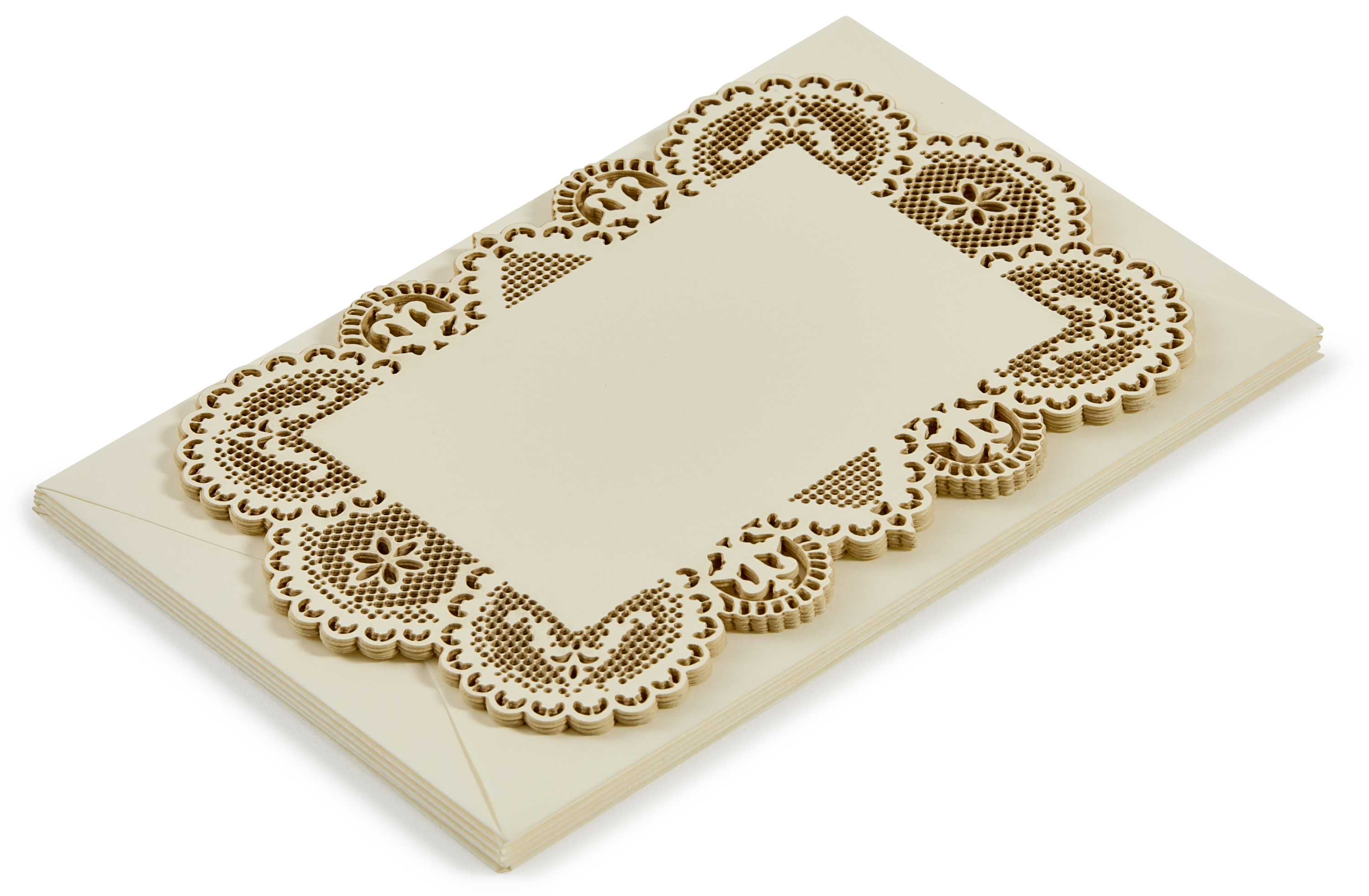 Versatile and beautifully cut French lace postcards which can be utilised for wedding purposes, as table setting cards, thank you notes, enclosure notelets, as a support for drawing and painting, to embellish a photograph, or whatever your heart desires - so long as it's doily themed.