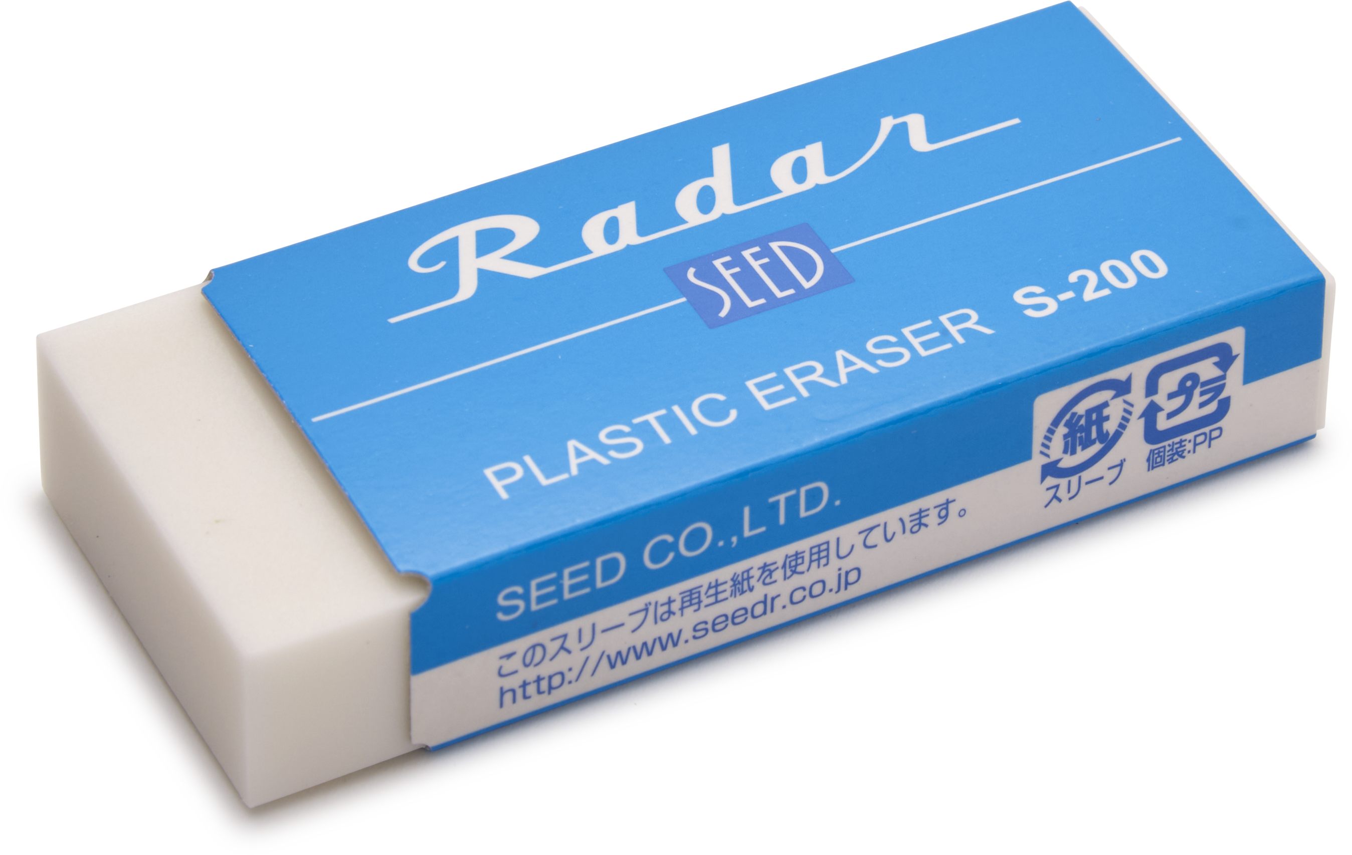 In 1968 Seed released its first and best selling eraser the "Radar" here presented. Its packaging remains nearly entirely unchanged. Next year it will celebrate its 40th birthday.