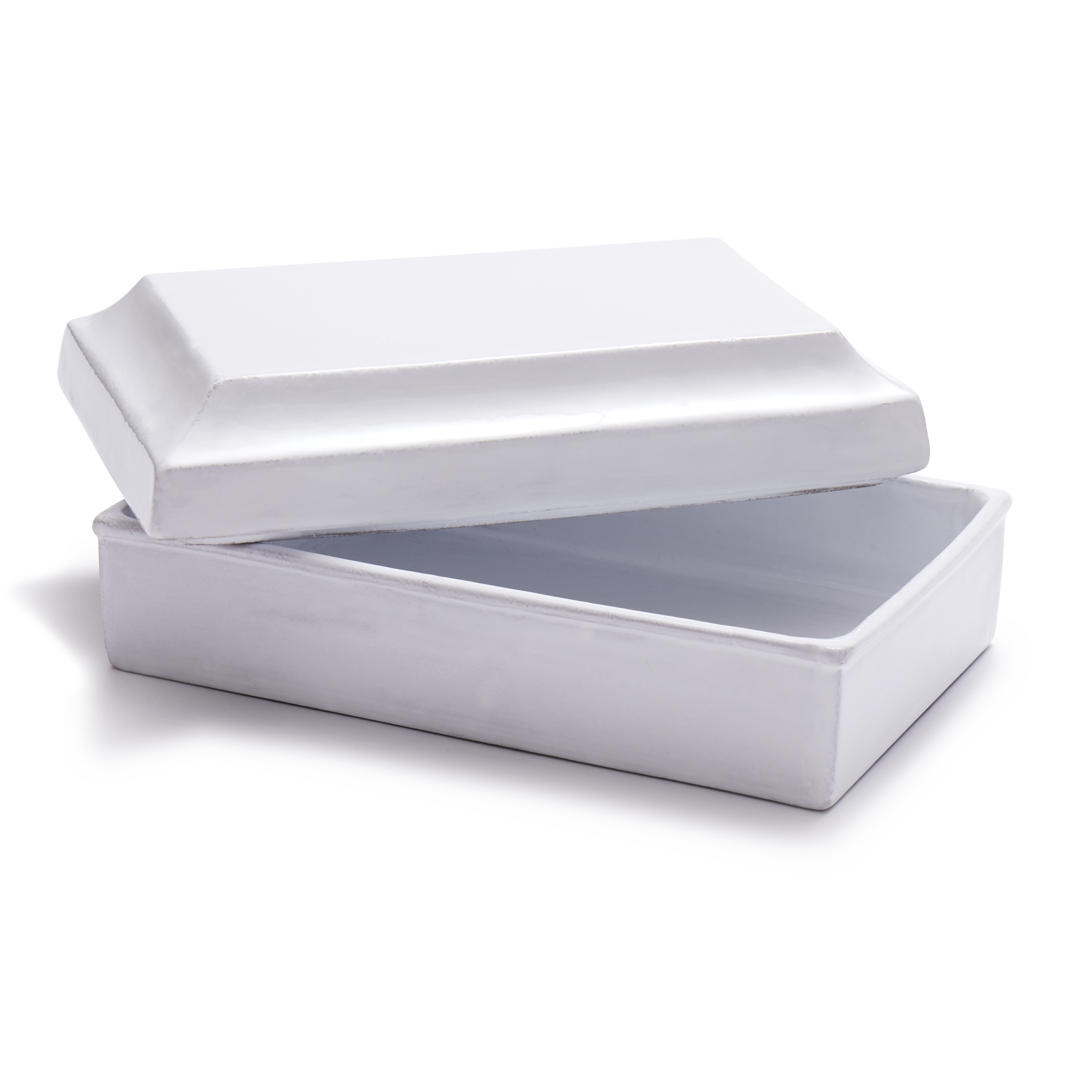 New to the Choosing Keeping assortment, this beautiful ceramic box is made by one of a few studios in central Paris still actively producing ceramic tableware using traditional 18th century methods. The design is inspired from eclectic antiques collected by company owners Benoit Astier de Villatte and Ivan Pericoli from flea markets and charity shops to give the pieces their signature wonky whimsical style - always featuring their signature milky white glaze over black terracotta.