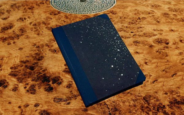 Linen bound and hand stitched in England and covered in French marbled paper with gold foil decoration.