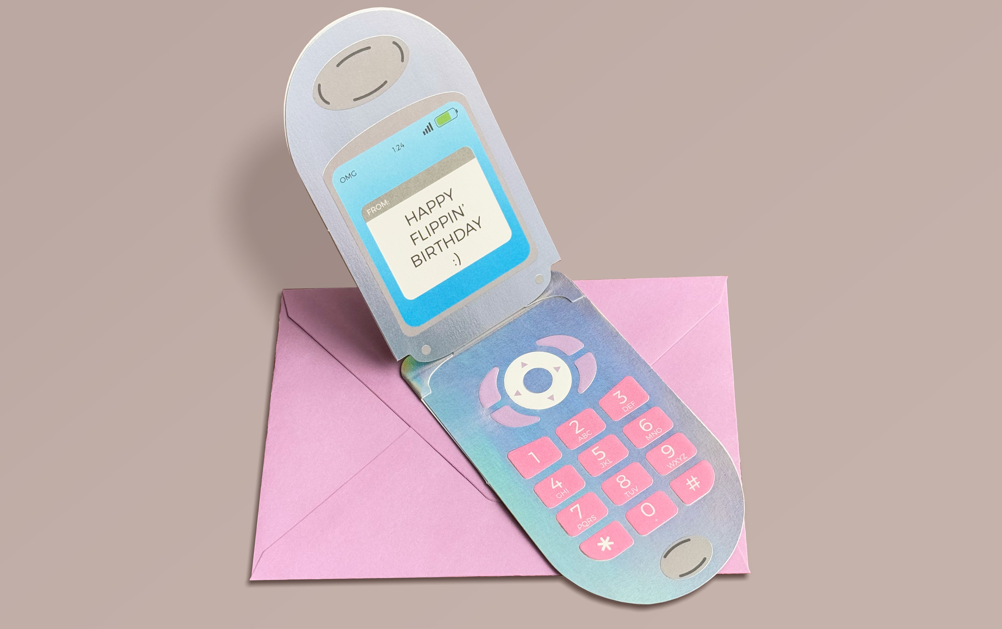 Nostalgia takes the form of a Y2K classic - the flip phone! Part of every it girl's arsenal, it fired bullets in the form of cryptic SMS messages ("c u l8r xx", anyone?) and polyphonic ringtones. Pair it with lip gloss and low rise jeans. Full holographic effect and naff punchline included.
