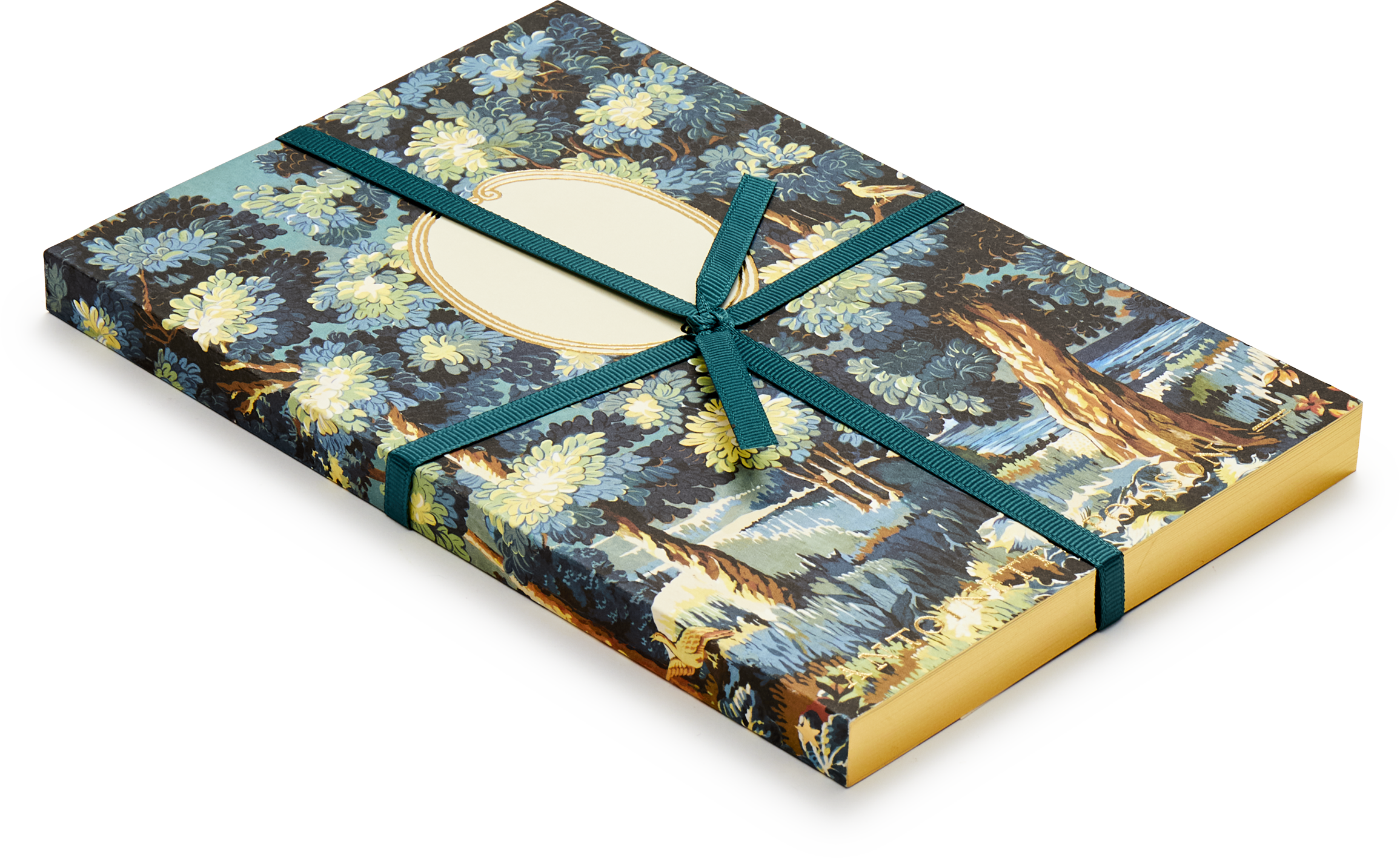 We present here a medium sized notebook with beautiful gold edge and plain cream paper. The pattern of the cover is embellished with hot foiling details for maximum effect.