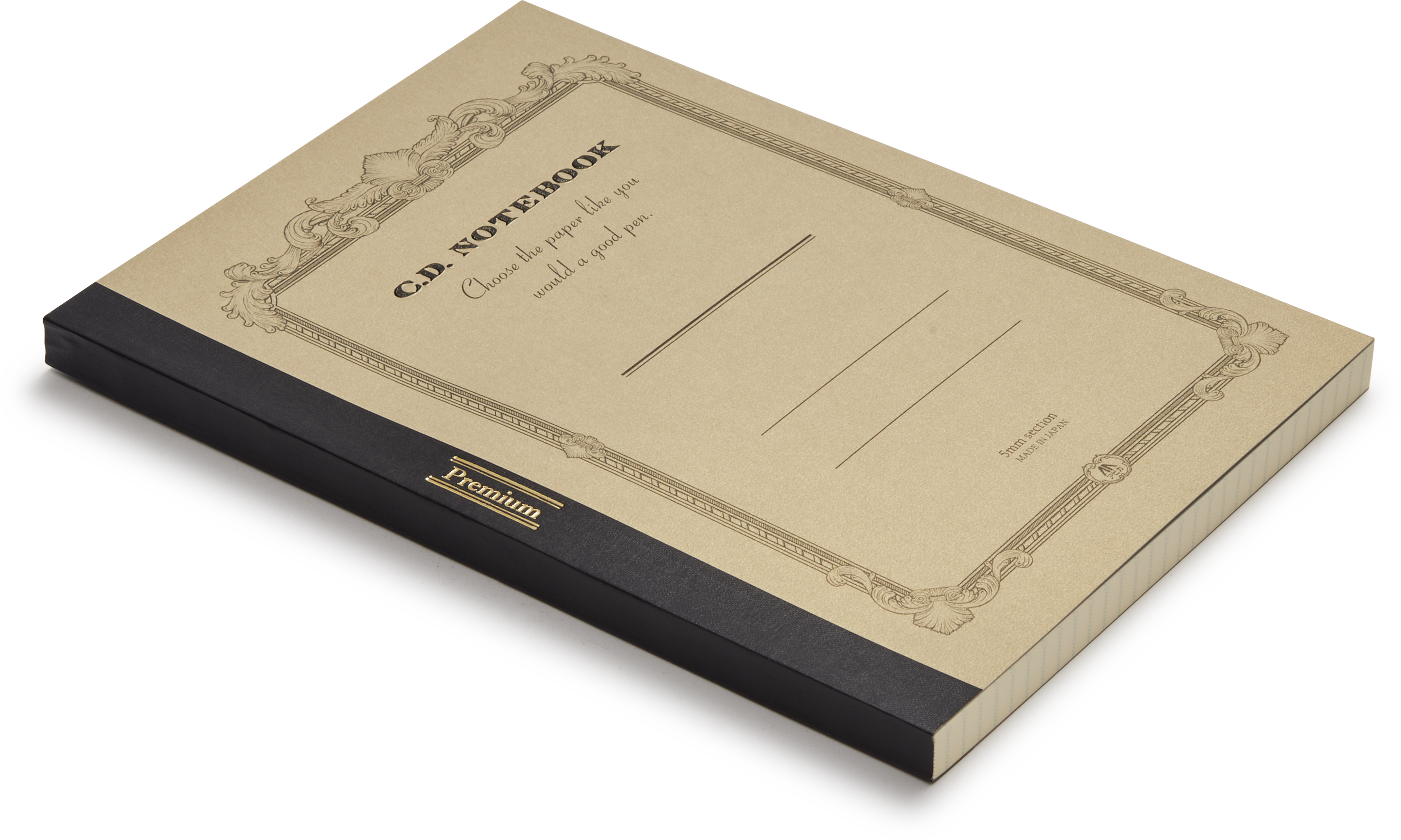 This is the Premium version of the usual Apica range - devised first and foremost with fountain pen use in mind. There are certainly little luxurious details, such as the shimmery cover paper - but the meat of the subject has to be the paper. Some people like a little tooth in the grain, but here smoothness has been given precedent. The paper surface is extremely soft and has nearly no feedback. For those who are looking for that gliding quick feeling, especially suitable for fine and quick drying pen types. Those using fine liners and hard pencils will get satisfaction from this ultra smooth surface. Cream paper has been elected as it is deemed softer on the eye than harsher brilliant white - of course lay-flat and stitch binding are de rigeur for this Japanese made notebook.