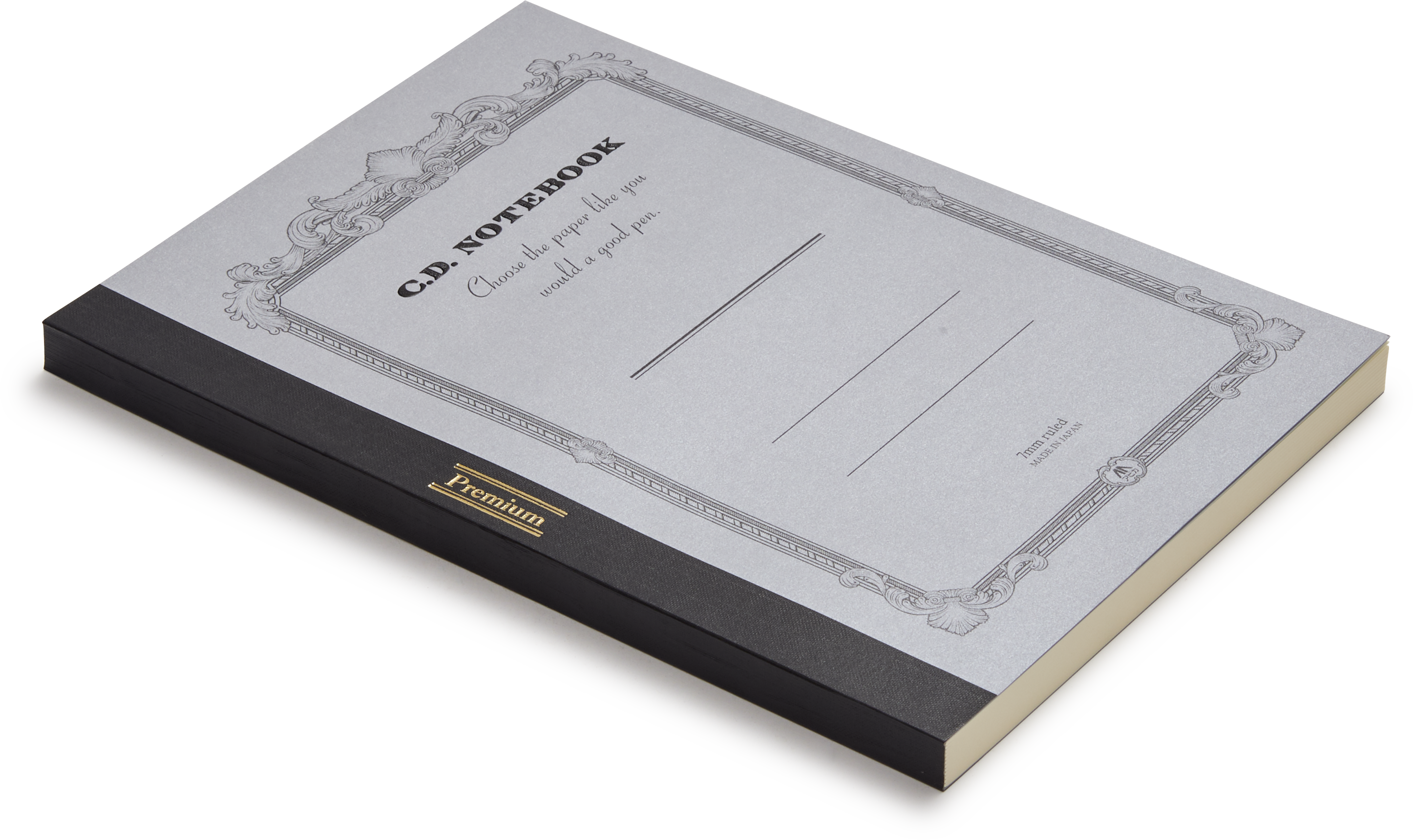 This is the Premium version of the usual Apica range - devised first and foremost with fountain pen use in mind. There are certainly little luxurious details, such as the shimmery cover paper - but the meat of the subject has to be the paper. Some people like a little tooth in the grain, but here smoothness has been given precedent. The paper surface is extremely soft and has nearly no feedback. For those who are looking for that gliding quick feeling, especially suitable for fine and quick drying pen types. Those using fine liners and hard pencils will get satisfaction from this ultra smooth surface. Cream paper has been elected as it is deemed softer on the eye than harsher brilliant white - of course lay-flat and stitch binding are de rigeur for this Japanese made notebook.