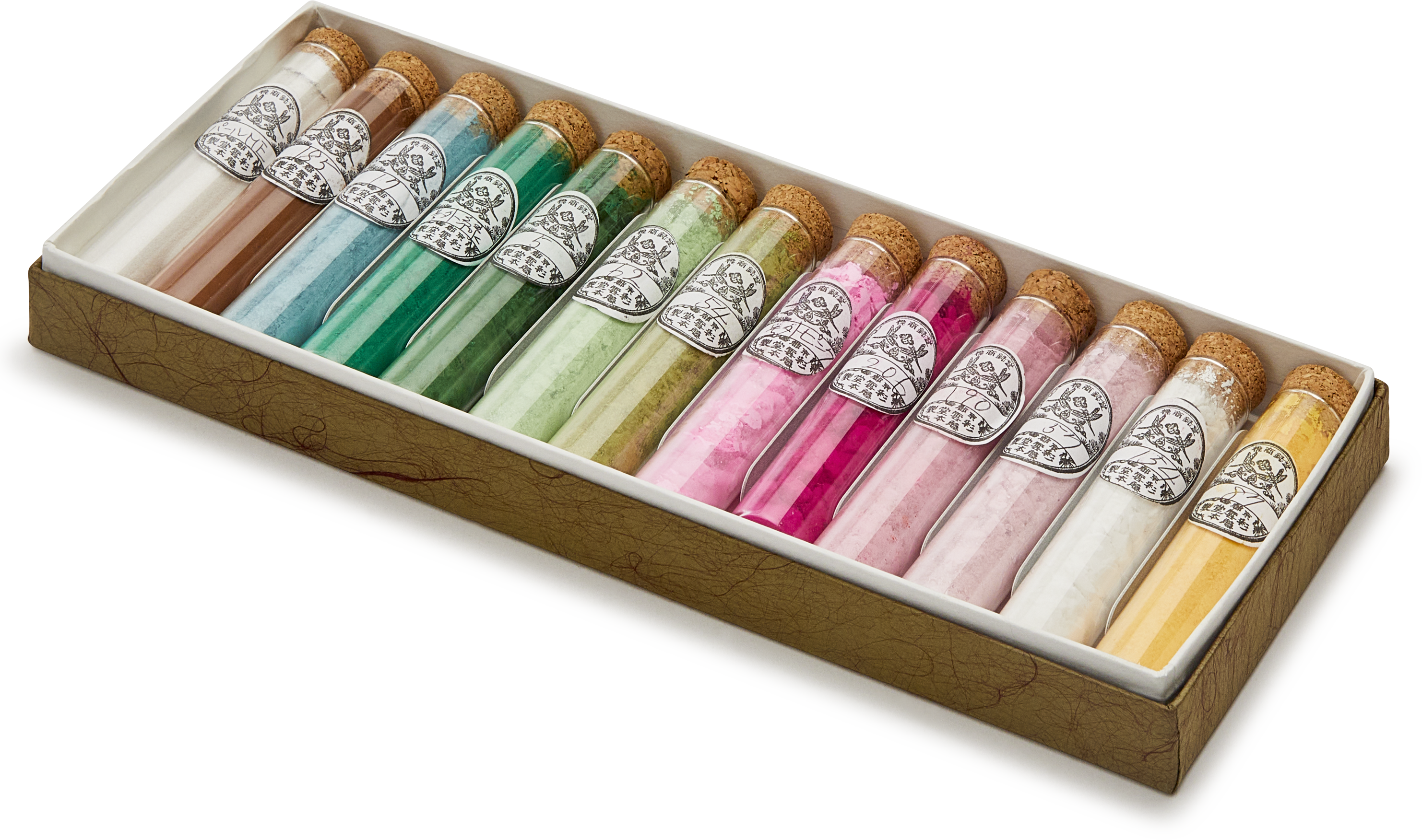 Following our comprehensive set of Japanese mineral pigments, we are pleased to offer 13 mineral pigments devised specifically to paint Japanese Pink Peonies.