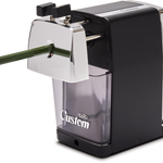 Makes for long tapered points - can be clipped to the desk for use with one hand (clip included)