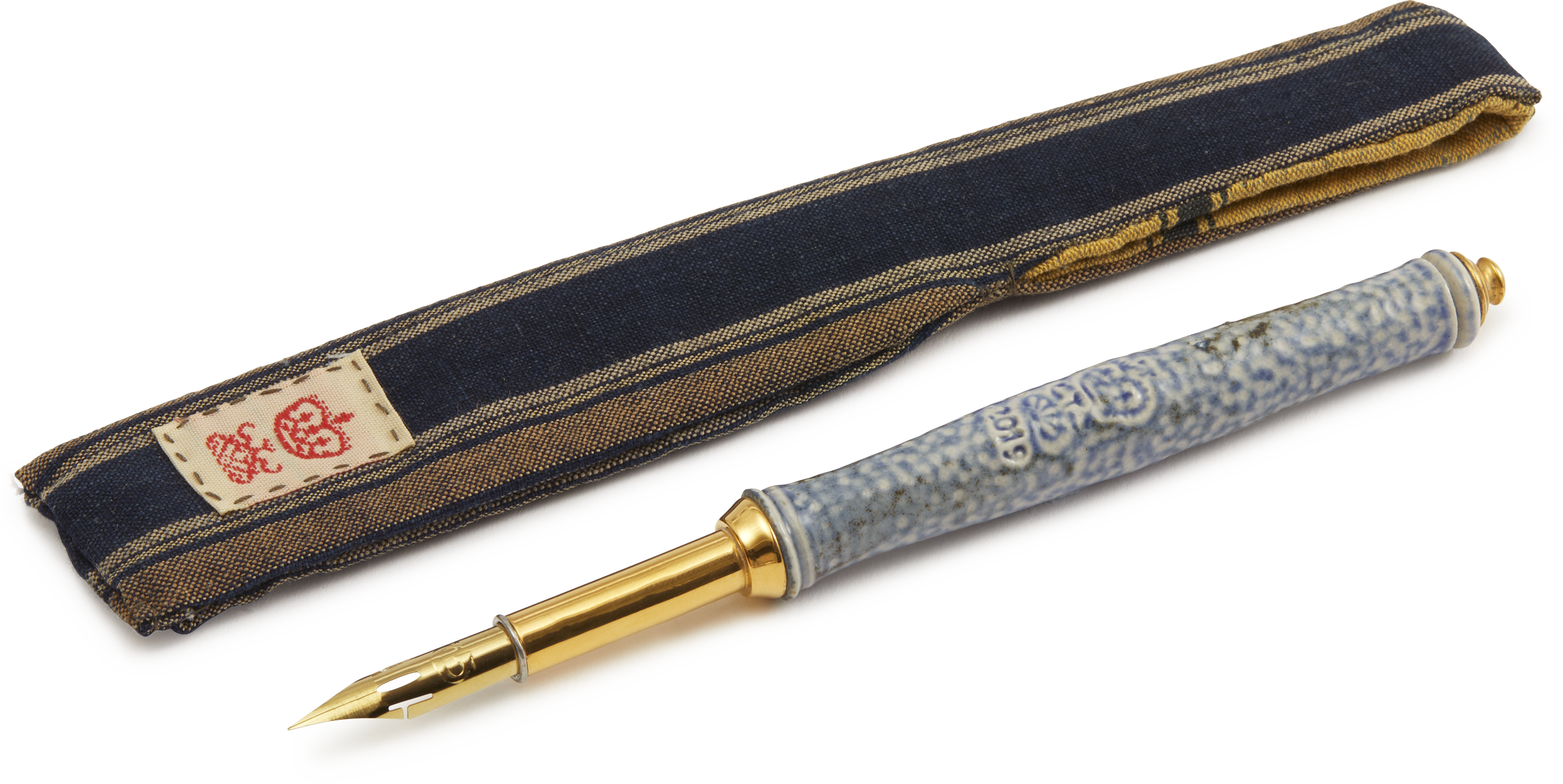 Produced as part of an ongoing collaboration between Choosing Keeping and British salt glaze potter Steve Harrison, following the 2020 exhibition 'Desk', this luxury dip pen, was produced exclusively for the shop, as part of an accoutrement of atmospheric accessories imagined for his fantasy desk. Use it with your favourite bottled ink both for drawing and writing, it can be fitted with any standard nib and is supplied with one Japanese G-nib.