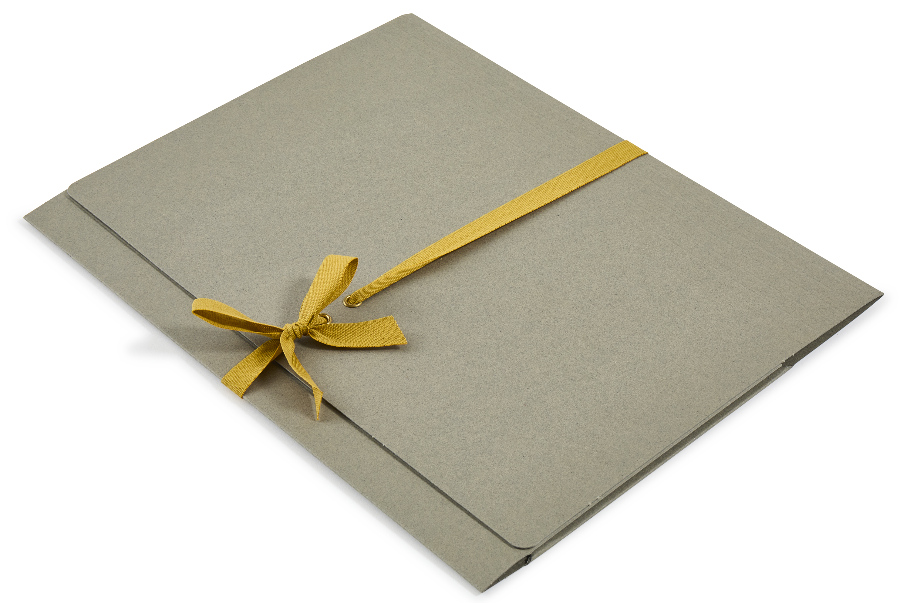 A4 Archival Folder, Grey with Mustard Cotton Ribbon