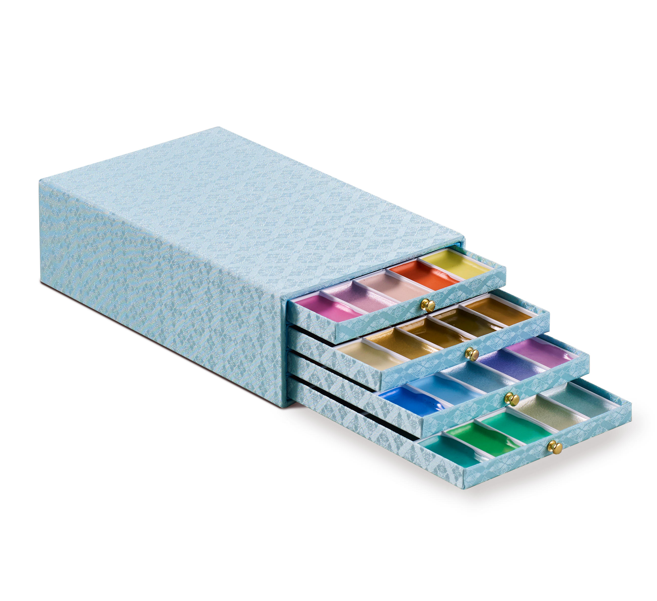 Enjoy this silky fabric handmade box containing, in gradient order, all the colours you might ever wish for - a beautiful and very special assortment for any watercolour enthusiast.