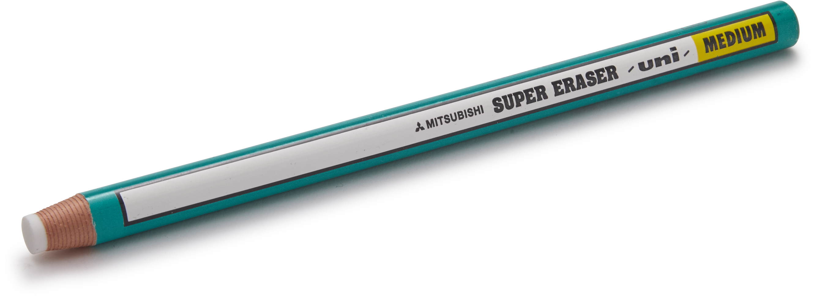The Mitsubishi Pencil Company (formerly known as Masaki Pencil Manufacturing Company, after founder Niroku Masaki) was established in 1887, producing high quality wooden pencils exclusively. Over 90 years later, they produced their first Uniball pen, which was also the first pen to have water-based ink. As the years went by, they expanded into a whole range of writing tools and stationery, including this eraser 'pencil'.