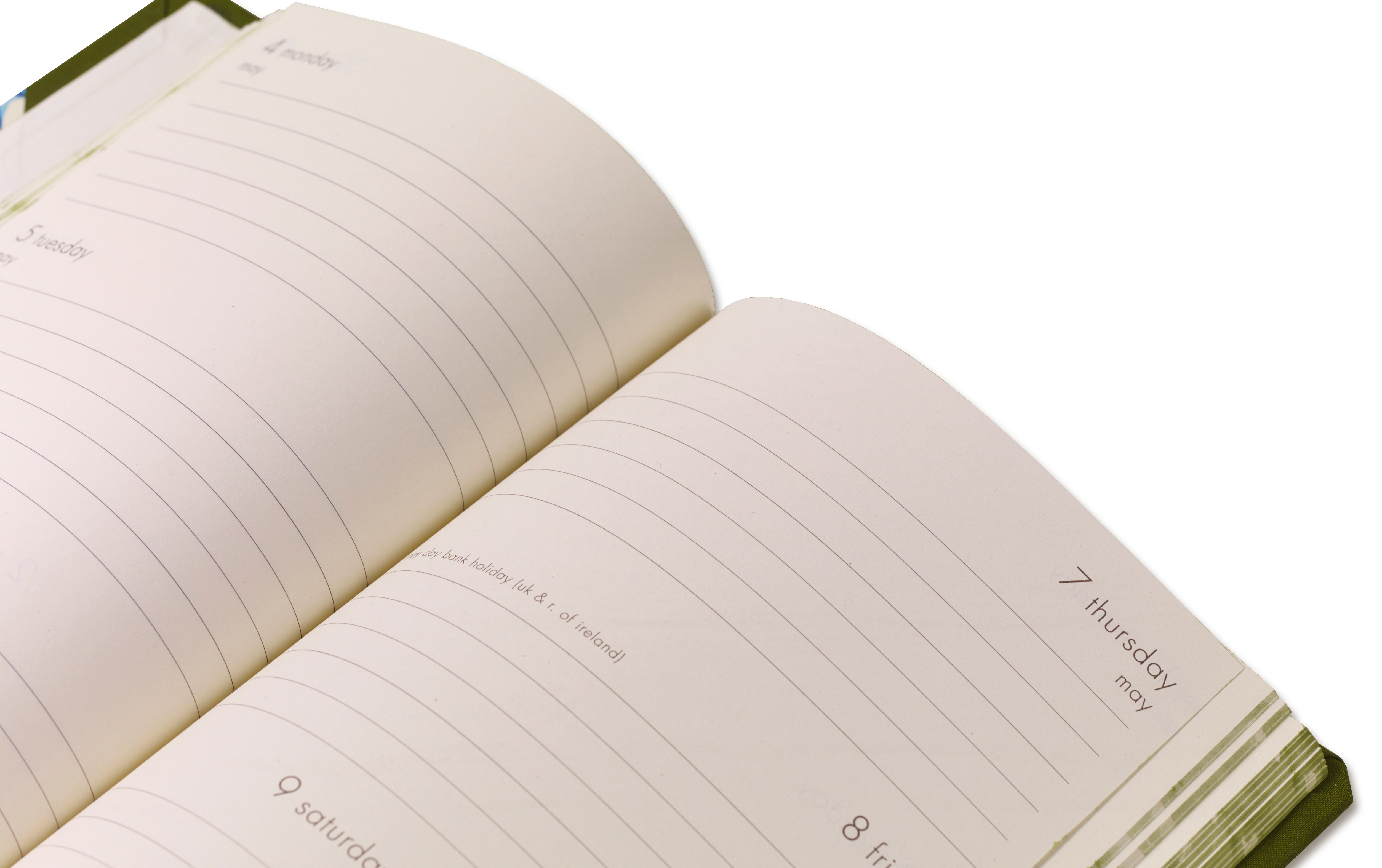 This diary offers a graphically clear and straightforward weekly layout - each week is spread over a double page. To more broadly plan your year, there are monthly calendars in the first part of the diary. The index towards the back offers dedicated space to organise your contacts and important information. Finally, a generous 50 sheets of ruled cream paper follows for general note-taking.