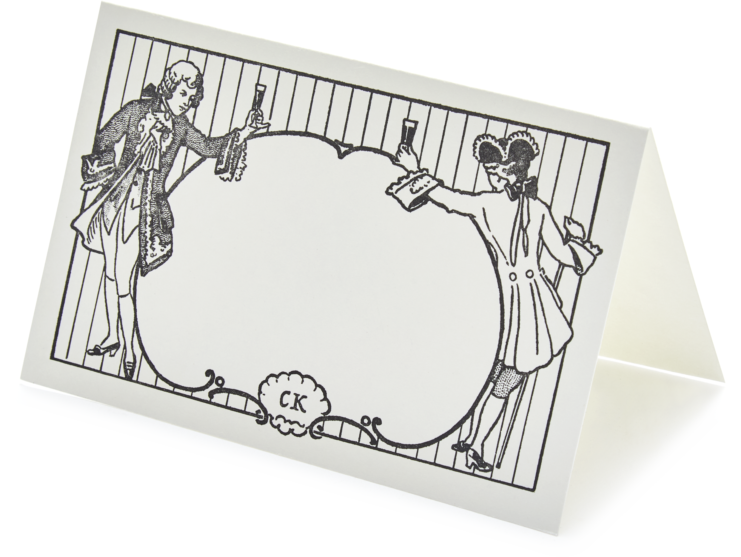 Add a touch of elegance to your dinner party with these delightful place cards in the theme of an 18th Century toast between gentlemen.