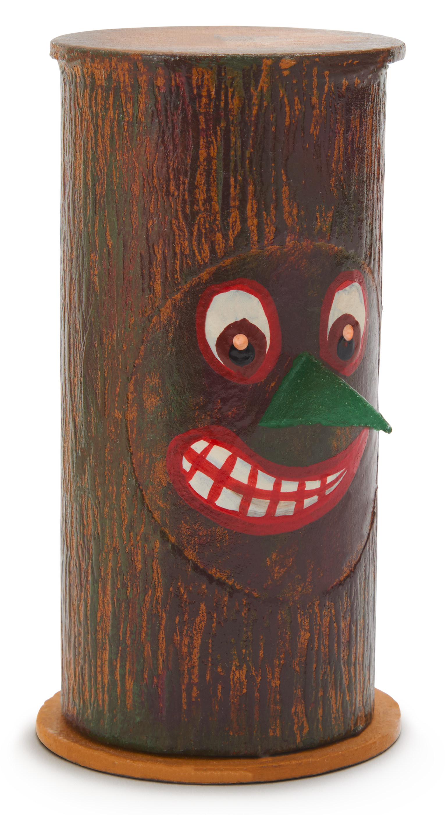 1930's Style Tree Stump Papier-Mâché Candy Box, Green Nose Stump