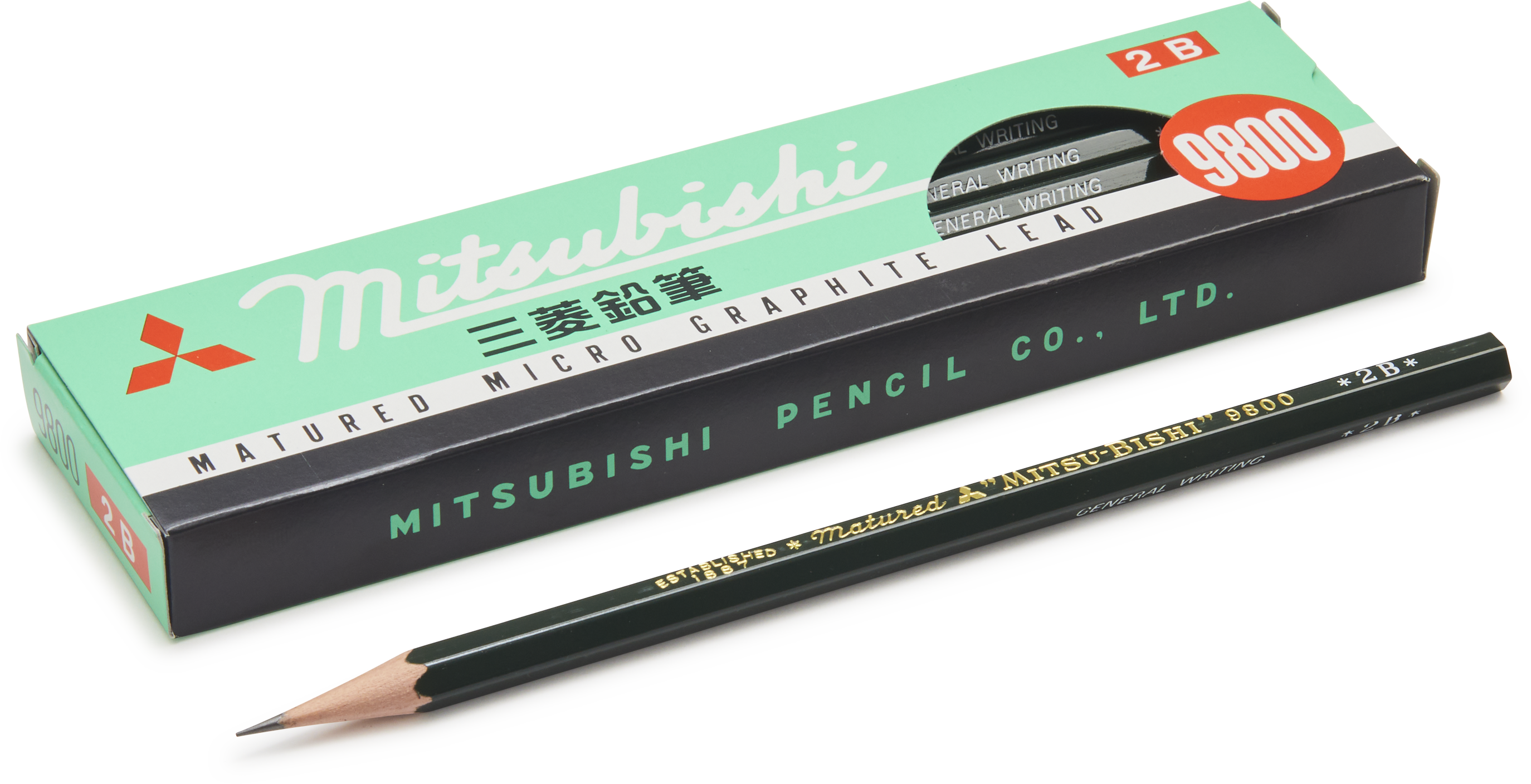 The box has hardly changed since 1946, when the Mitsubishi Pencil Company released the 9800, a design classic of Japanese stationery and still one of the best in terms of looks and performance. Mitsubishi was established in 1887 after its founder Mr Masaki having seen a pencil in 1878 at the Paris World Exhibition, sought to replicate the product (then a newly mass manufactured implement). Before then, stationery products were exclusively imported from Germany but Japan going through rapid modernisation and industrialisation during what is known as the Meiji Restoration became able to develop its own industry.