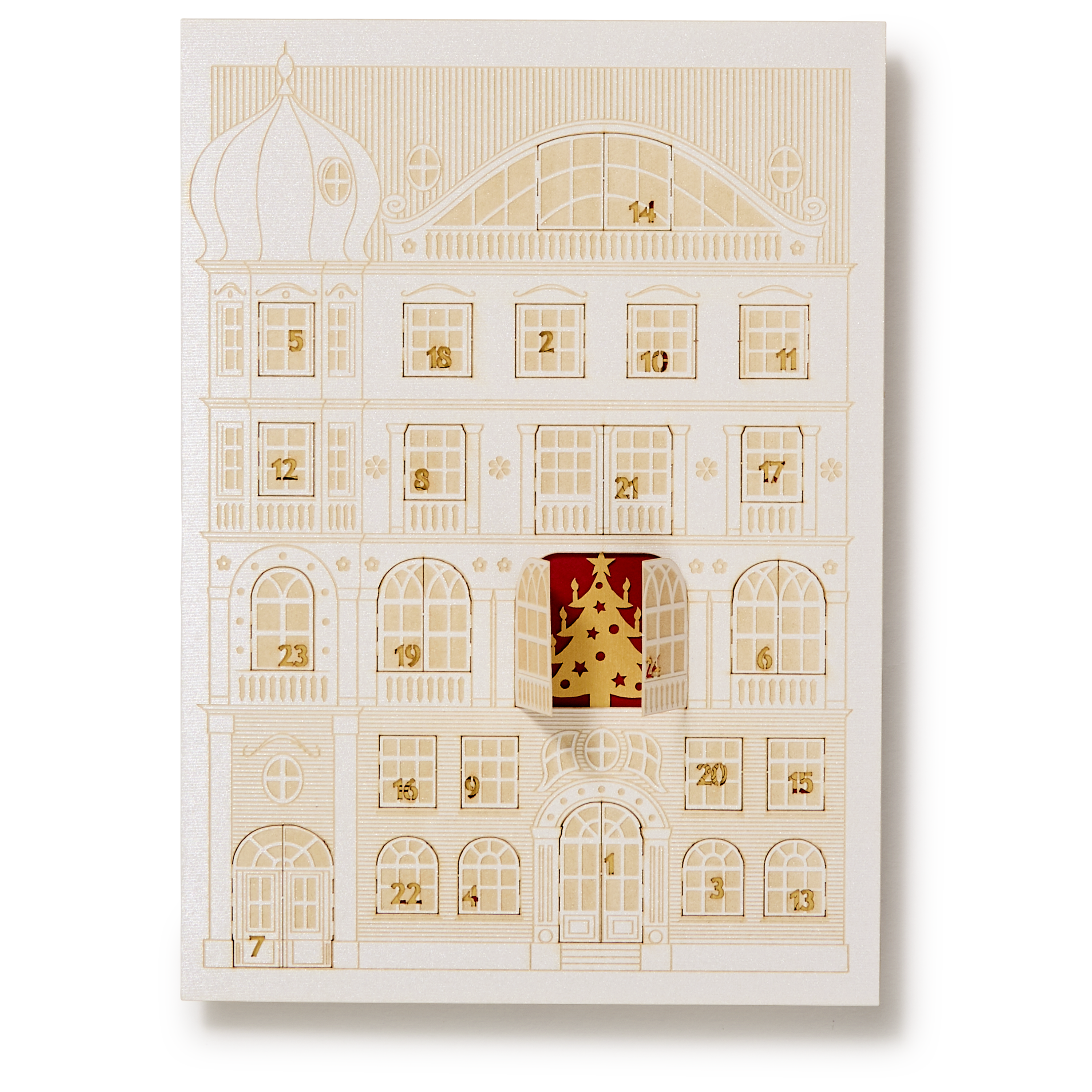 Ditch the mass-produced cheap chocolate advent calendars and discover what lies behind the 24 doors and windows of this majestic golden building. A beautifully finished card which can be reused year after year without losing its charm.
