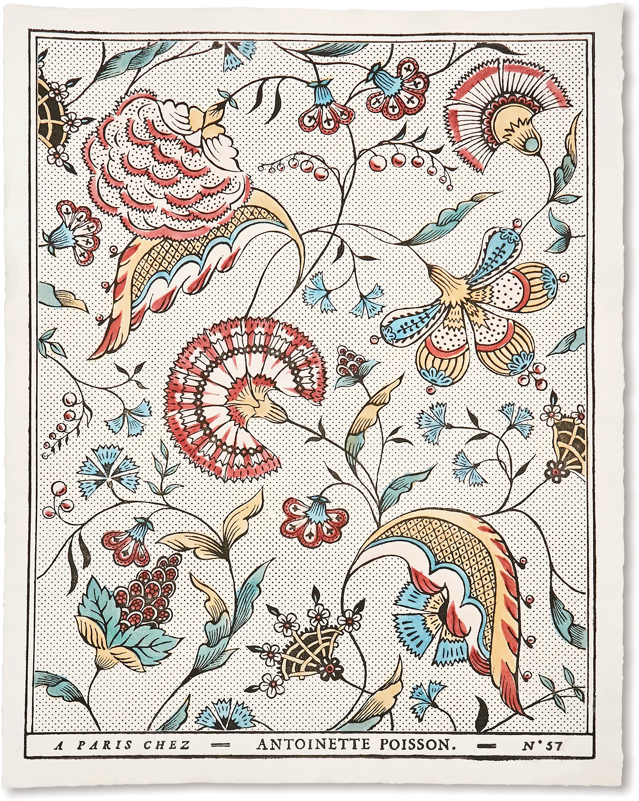 Antoinette Poisson is a recently established studio founded in Paris, committed to the conservation and reproduction of French dominoté papers, small sized hand wood-blocked and hand-painted decorative prints, first made in France circa 1700.