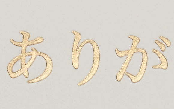 Here presented, a very proper, traditionally hand engraved card, using copperplate printing with gold highlights. Does what it says on the tin, a polite way to say thank or hello you in all circumstances, particularly when in Japan.
