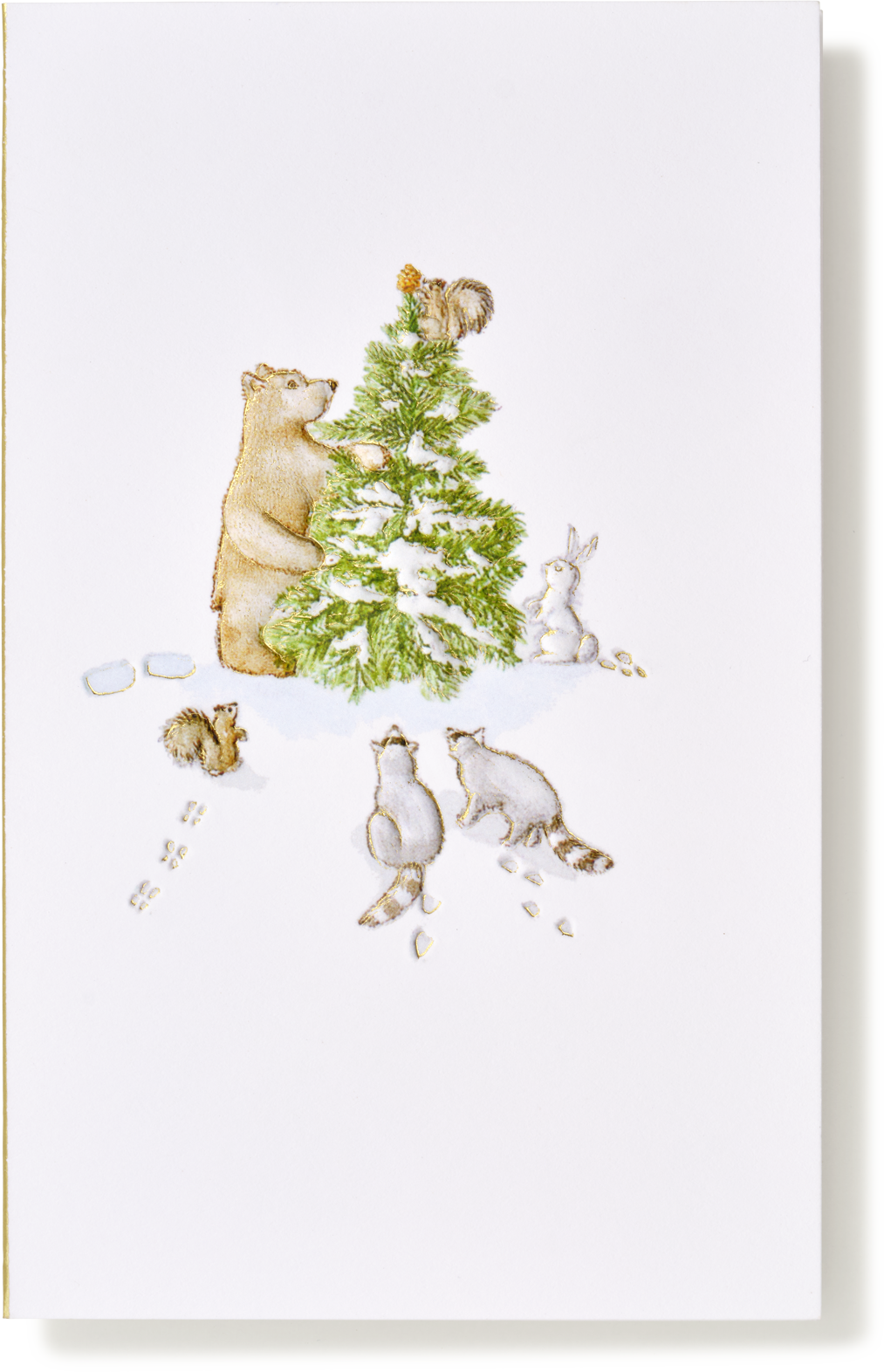 A very sweet intimate and naturalistic interpretation of Christmas and winter holidays - a group of forest animals, reminiscent of AA Milne's loveable group of friends - beautifully printed, with deep embossing and fine detail.