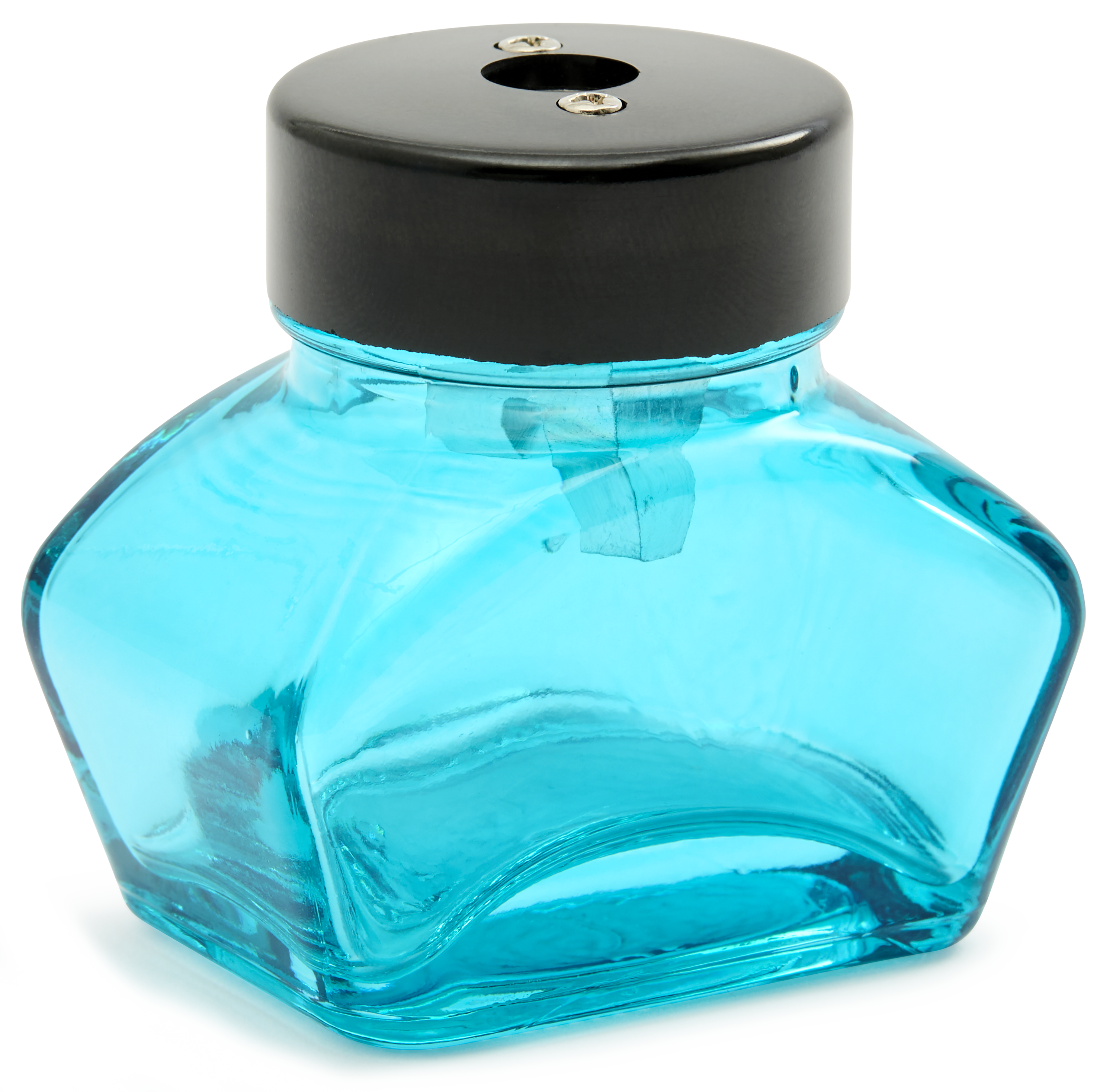 This sharpener is equipped with a blue glass reservoir to collect shavings, making the sharpening process much tidier.