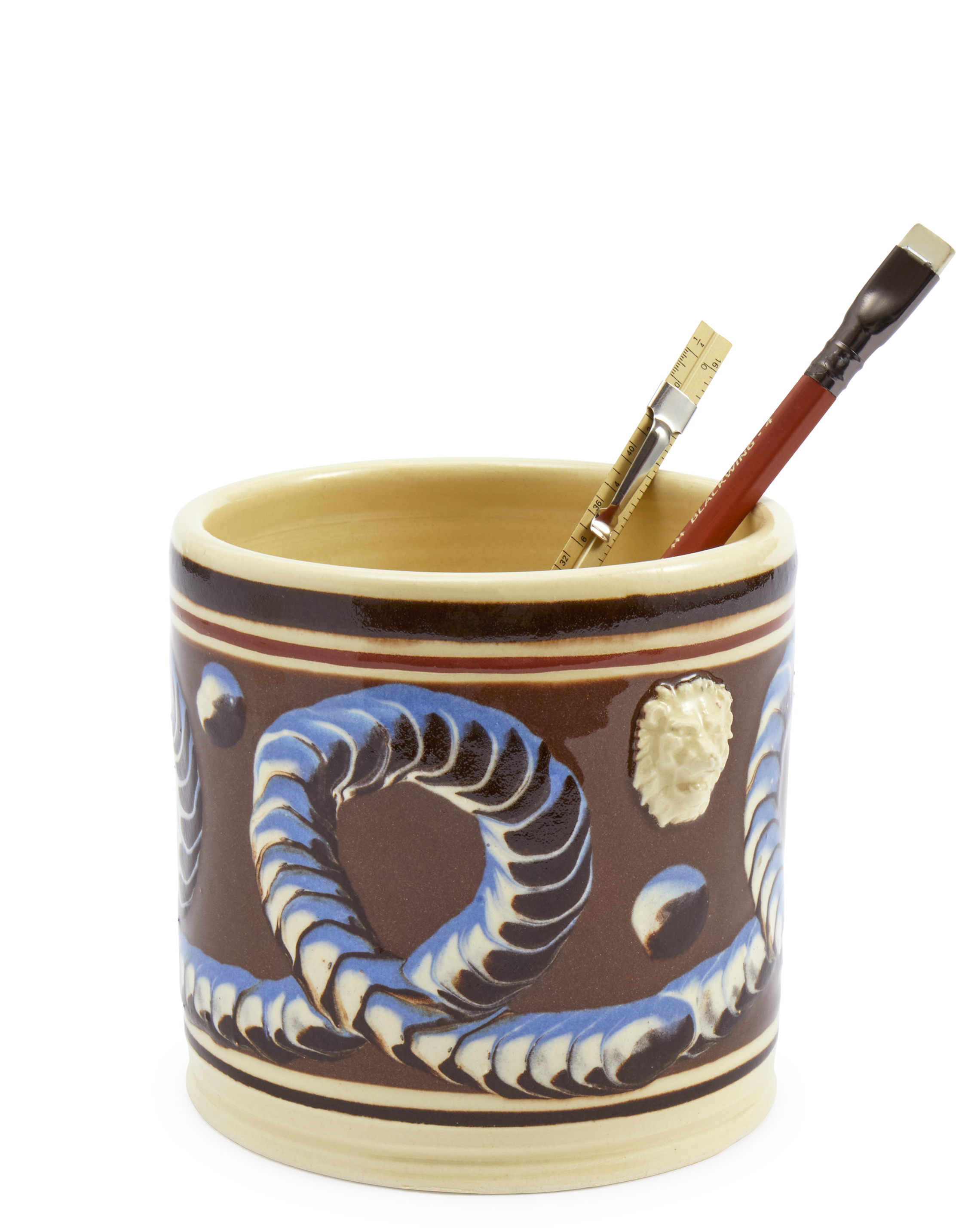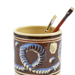 Brown Mochaware Ceramic Pen Pot, 'Earth Worm'
