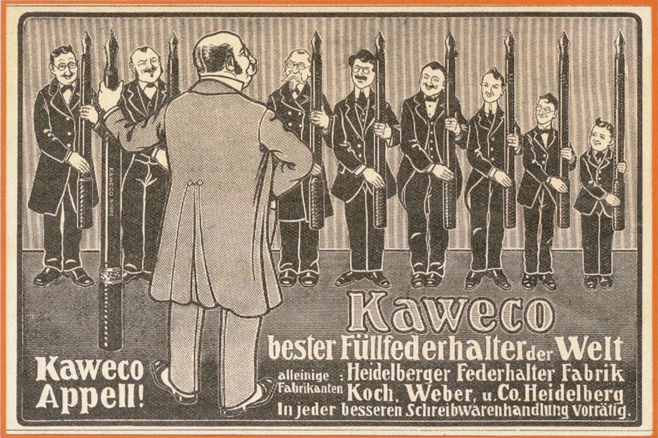 Choosing Keeping holds the largest range of Kaweco pens in the UK - indeed we have built a long-lasting friendship with the beloved Gutberlet family who run the company with so much brains and gusto. Kaweco is often mistaken for a Japanese brand - not so! - it is 100% German. Originally established in 1899 in Heidelberg (also home of Lamy), the company was eventually renamed Kaweco as its owners namesake, Henrich Koch and Rudolph Weber - KOch, WEber and COmpany. Here pictured, an advertisement from 1911 which declares, ‘stocked in every best stationery store’ - still the case!