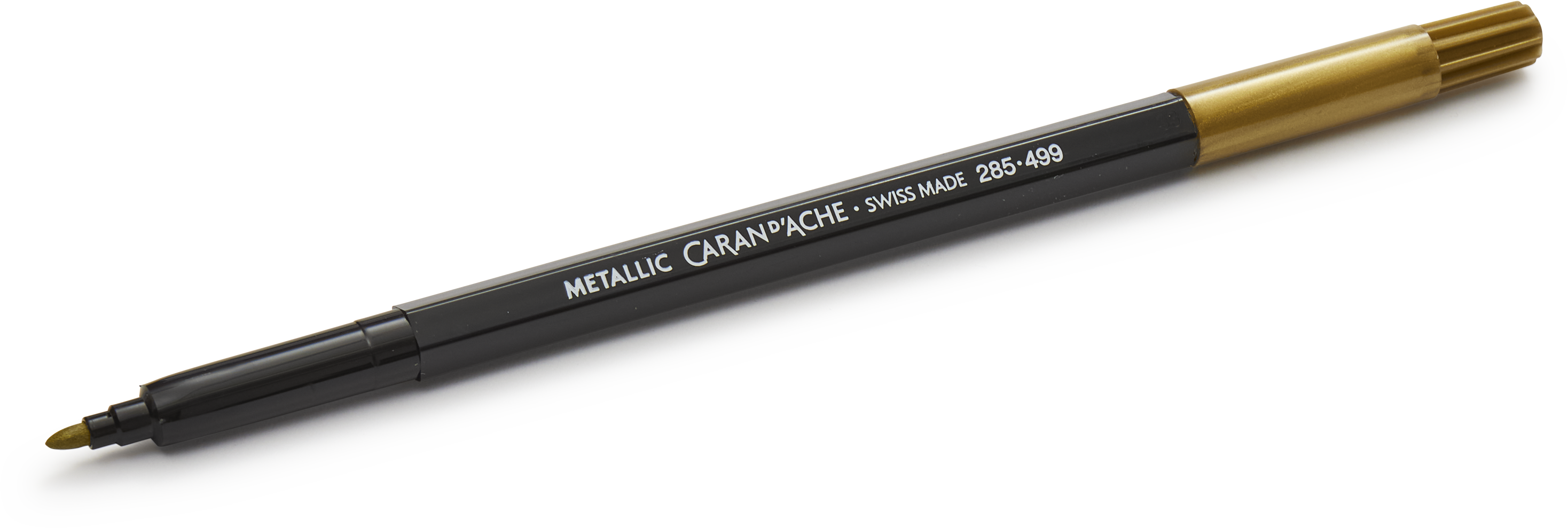 It’s gold felt tipped pen, what is affectionately also known in our shop, as a “Christmas pen” for writing labels, small notes in an easy thick and potty way. Made in Switzerland by Caran d’Ache, it’s got a nice warm hue to the gold colour and last well if the cap is placed back on consistently. Nothing revolutionary, but extremely useful during the holidays and as part of a gift wrapping toolkit. It’s gold felt tipped pen, what is affectionately also known in our shop, as a “Christmas pen” for writing labels, small notes in an easy thick and potty way. Made in Switzerland by Caran d’Ache, it’s got a nice warm hue to the gold colour and last well if the cap is placed back on consistently. Nothing revolutionary, but extremely useful during the holidays and as part of a gift wrapping toolkit.