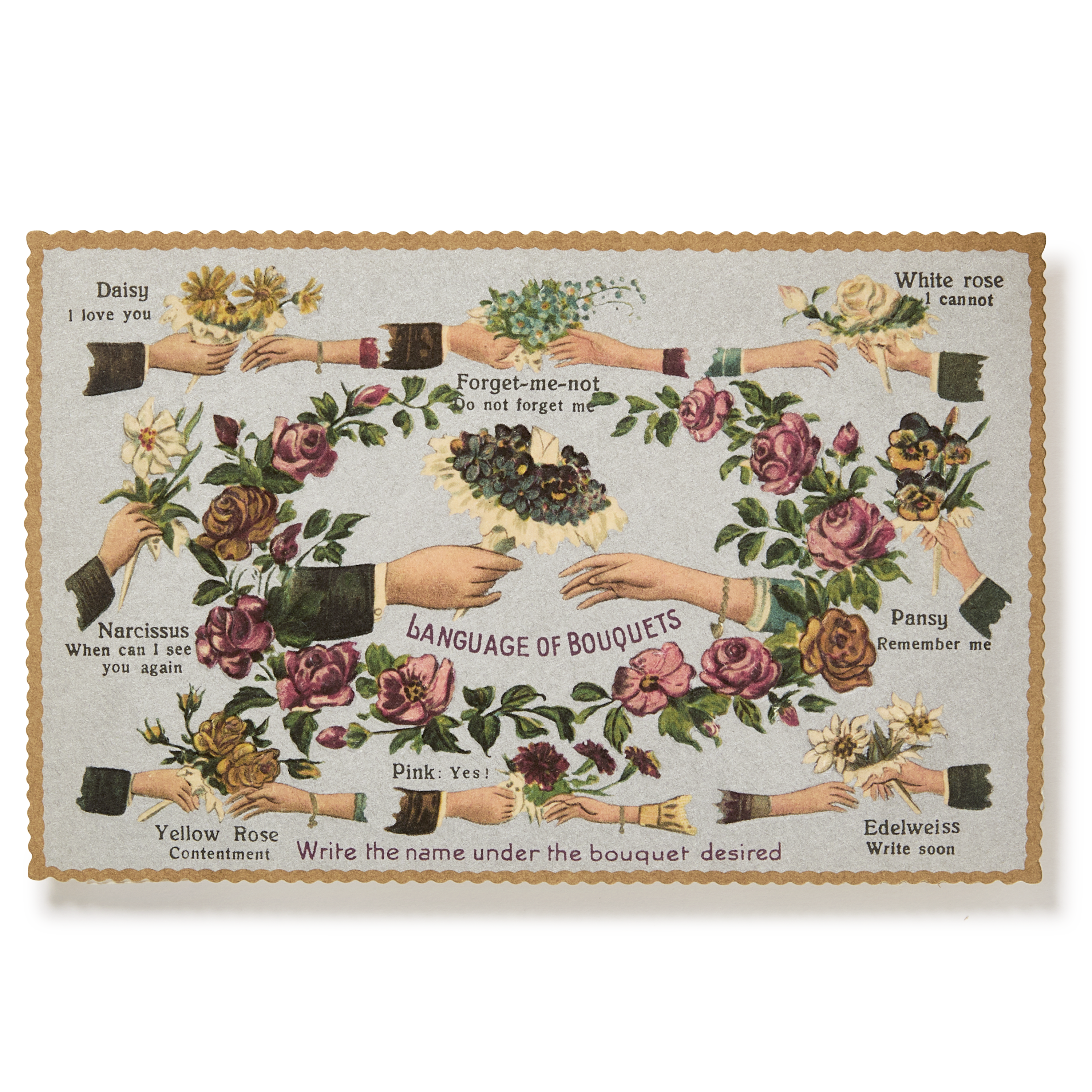 Part of a broader turn-of-the-century fascination with coded communication, the “Language of…” postcards, whether of flowers, colours, or sentiments, translated emotion into symbol. Produced in Germany at the height of postcard culture, they offered a way to express affection, longing, or hope within the conventions of polite society. Taken from the Choosing Keeping extensive collection of ephemera, we have worked carefully to match the distinctive colour palette and embossed texture of the originals - perfect for sending as a small note, framing as part of a gallery wall, or accompanying a gift.