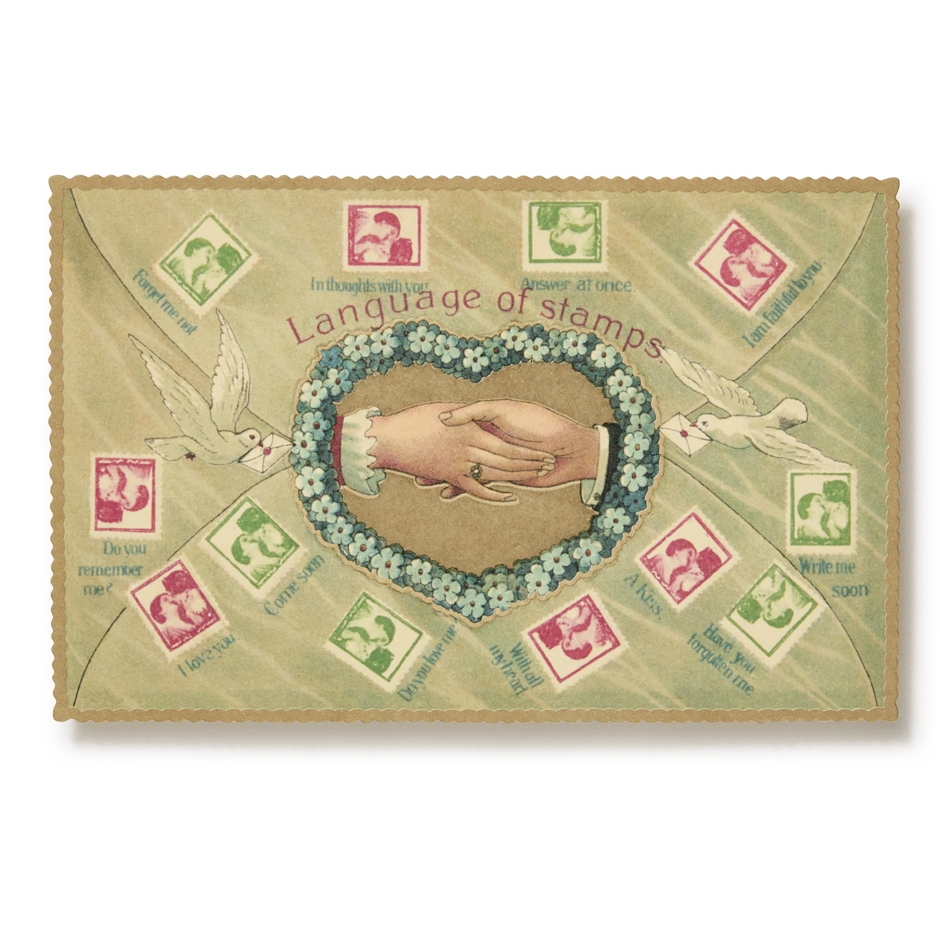 Part of a broader turn-of-the-century fascination with coded communication, the “Language of…” postcards, whether of flowers, colours, or sentiments, translated emotion into symbol. Produced in Germany at the height of postcard culture, they offered a way to express affection, longing, or hope within the conventions of polite society. Taken from the Choosing Keeping extensive collection of ephemera, we have worked carefully to match the distinctive colour palette and embossed texture of the originals - perfect for sending as a small note, framing as part of a gallery wall, or accompanying a gift.