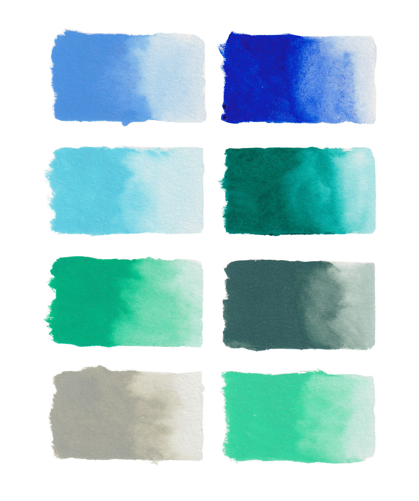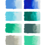 205 - Tanryoku; 219 - Rikyuu-Nezumi; 304 - Sumi-Byakuroku; 5 - Hana-Haku-Midori; 217 - Kujaku-Ao; 204 - Mizu iro; 7 - Gunjou; 21 - Byakugun.