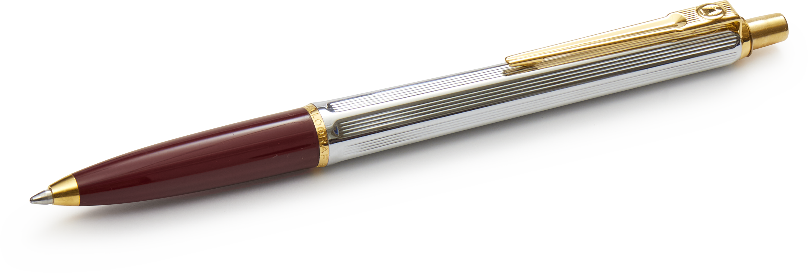 Chrome and Gold Swedish Postwar 1945 Ballpoint Pen, Burgundy