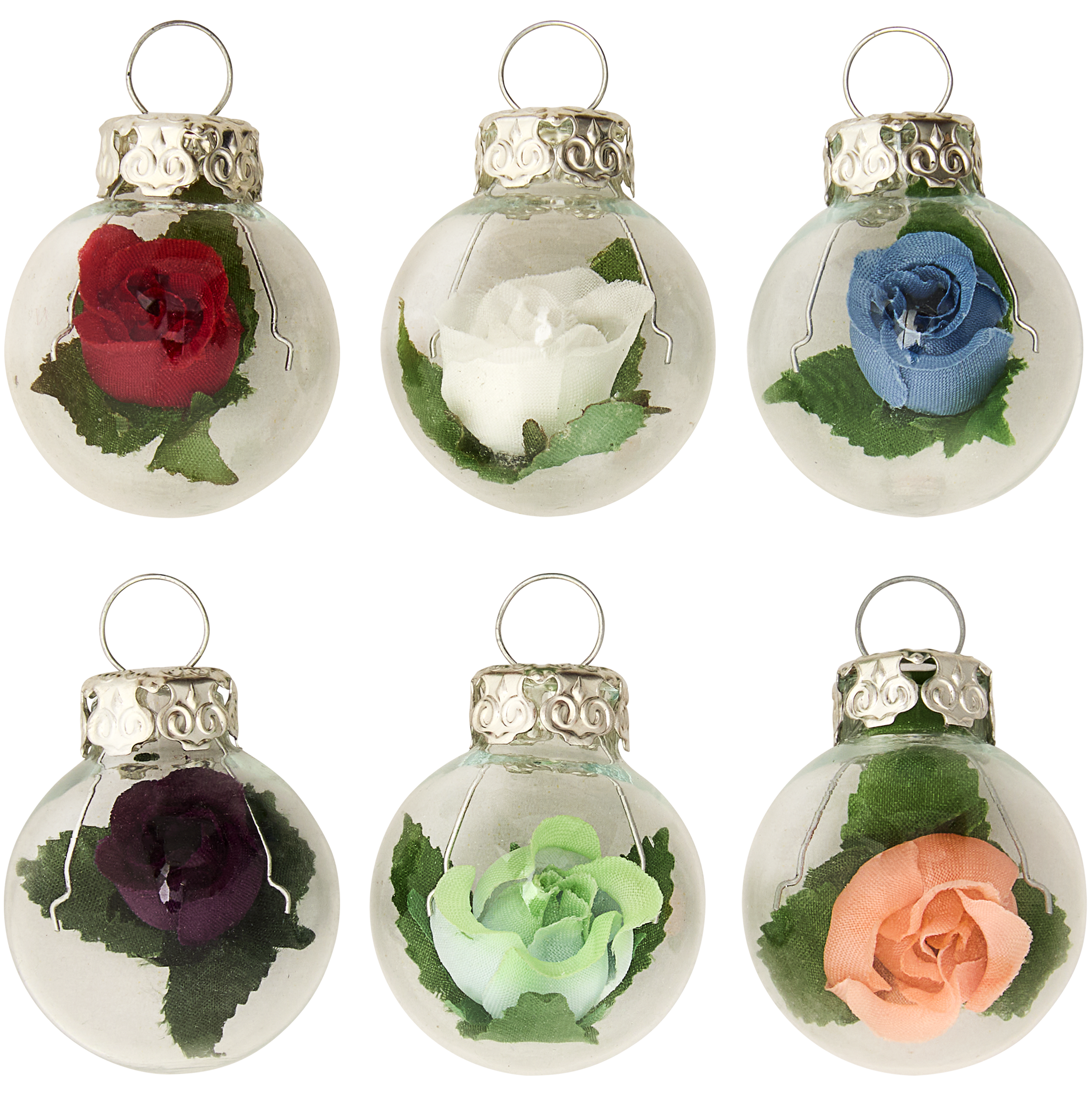 Set of 6 Glass Ball with Rose Inside Christmas Ornament