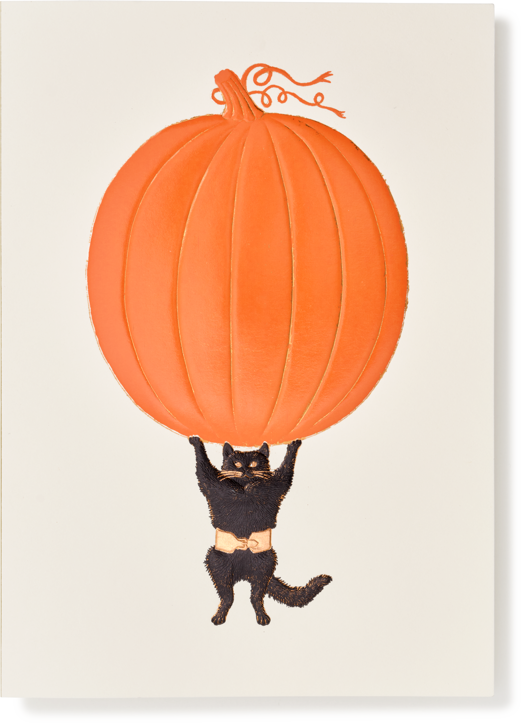 A very silly puss-in-boots training for the Halloween weightlifting competition - enjoy this lighthearted greeting featuring expert printing, with copper foil highlights and embossing.