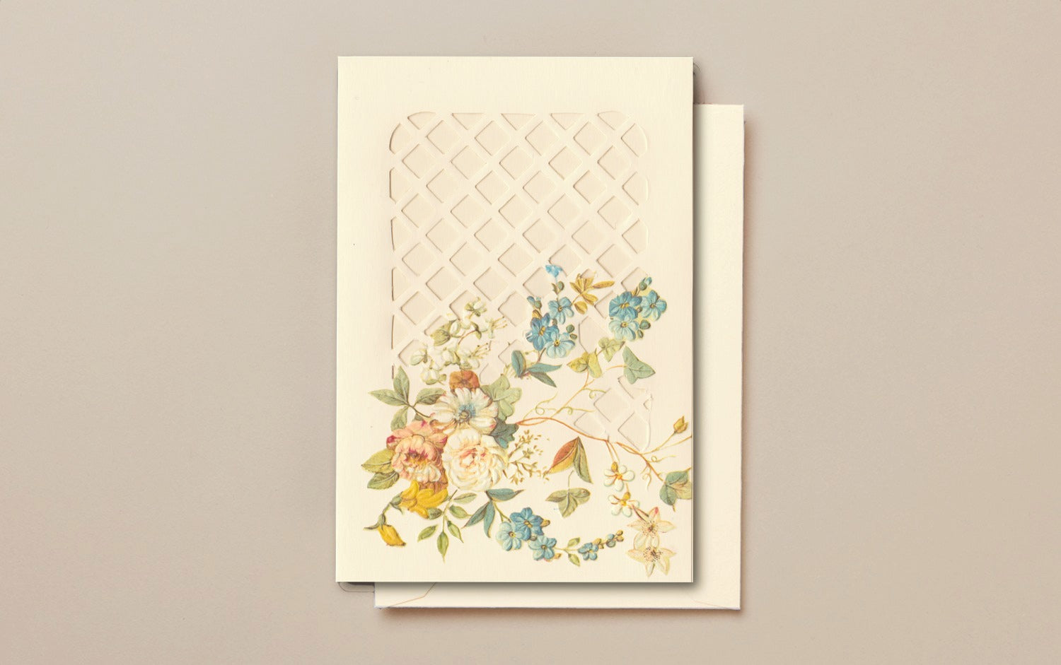 One of a series of die-cut floral cards suitable for any occasion. Each card features a delicately cut cover giving a peek at the message inside.