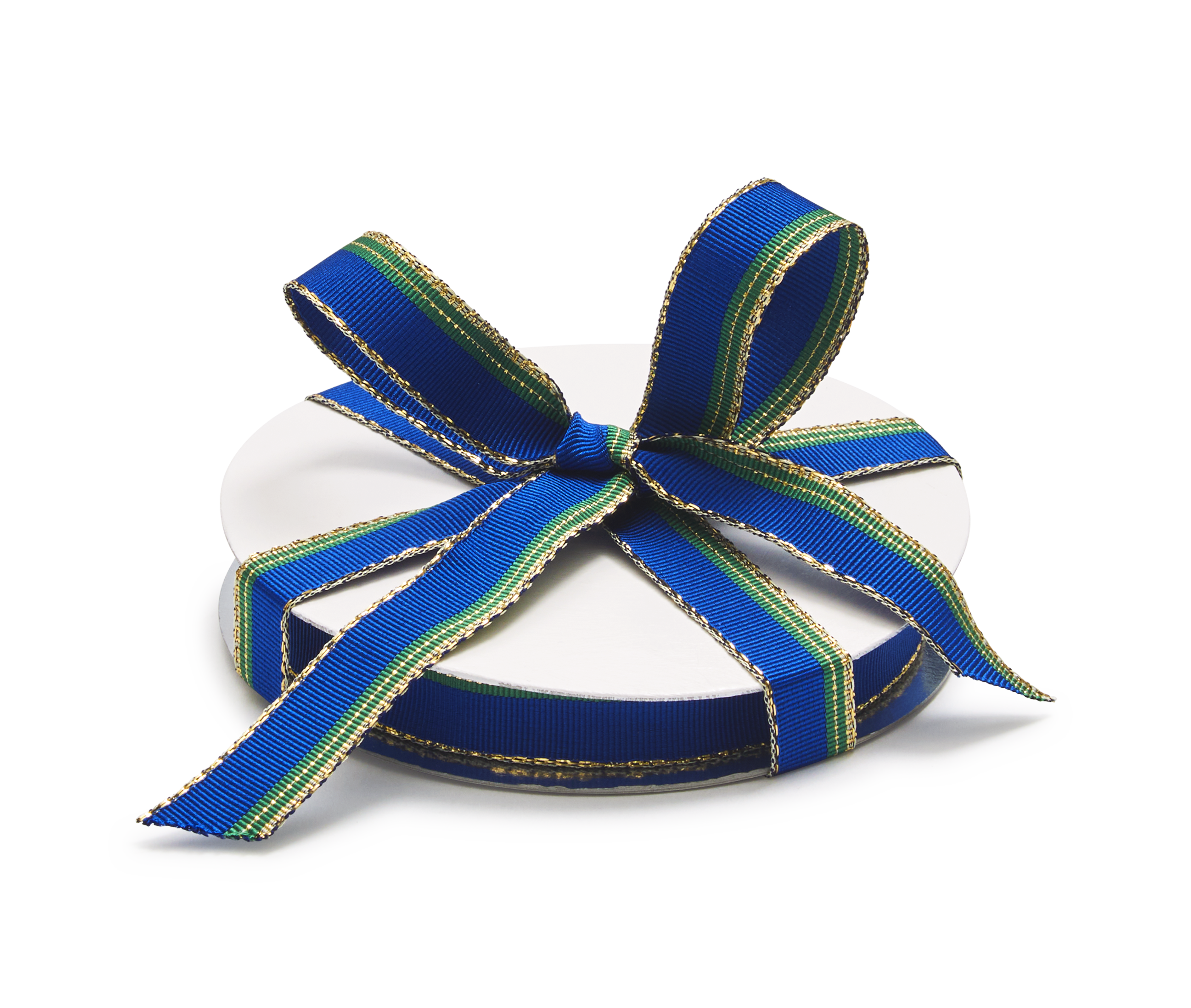 This design, especially conceived for the Christmas season, is a beautiful blend of grosgrain in two colours with a metallic detail. It looks both festive and luxurious. Thick, it keeps its shape nicely when making bows. Made in Japan it looks unequivocallly quality.