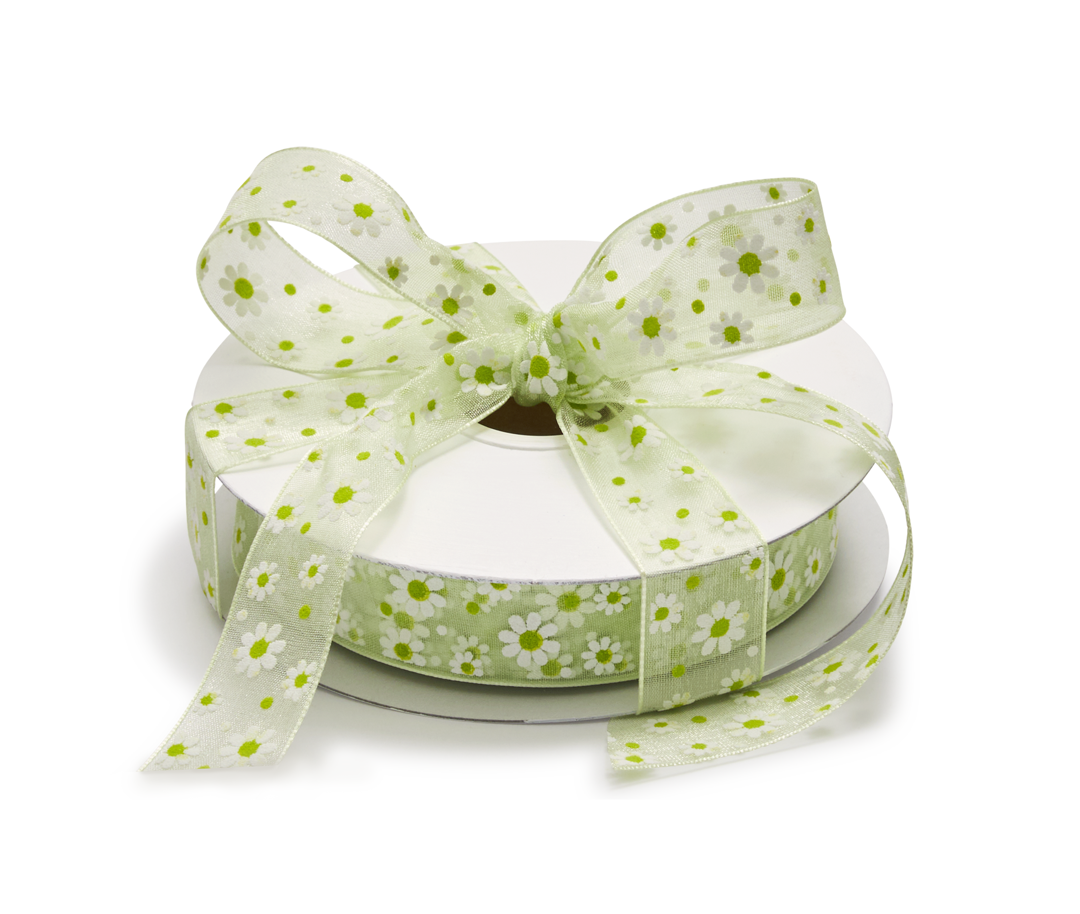 Something fresh and a bit different with this sheer lime green floral ribbon - would be a cute match paired with pink or a dainty floral paper pattern.