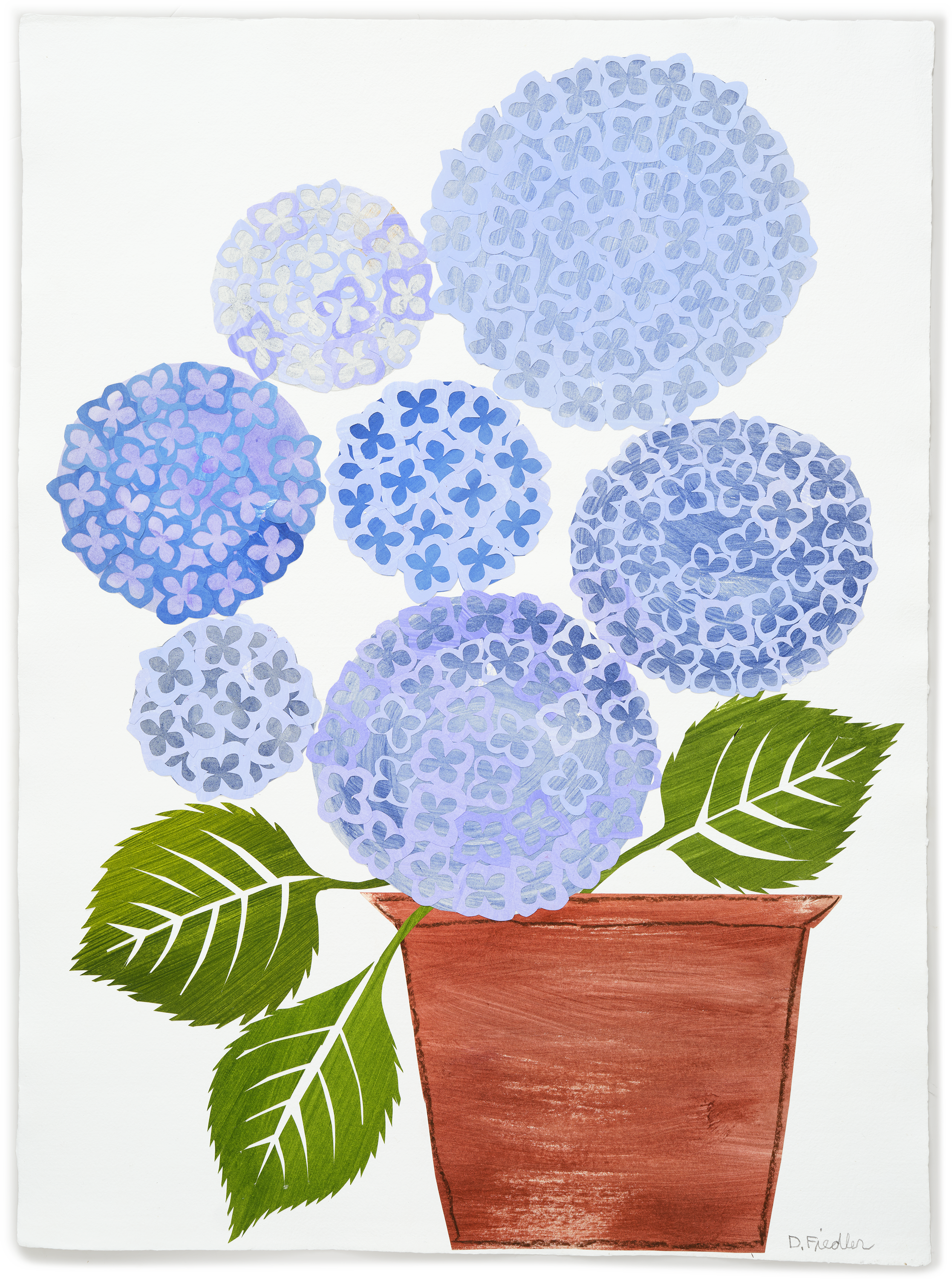 Denise Fiedler Floral Collage - 7 Lavender Blue Hydrangea in Pot