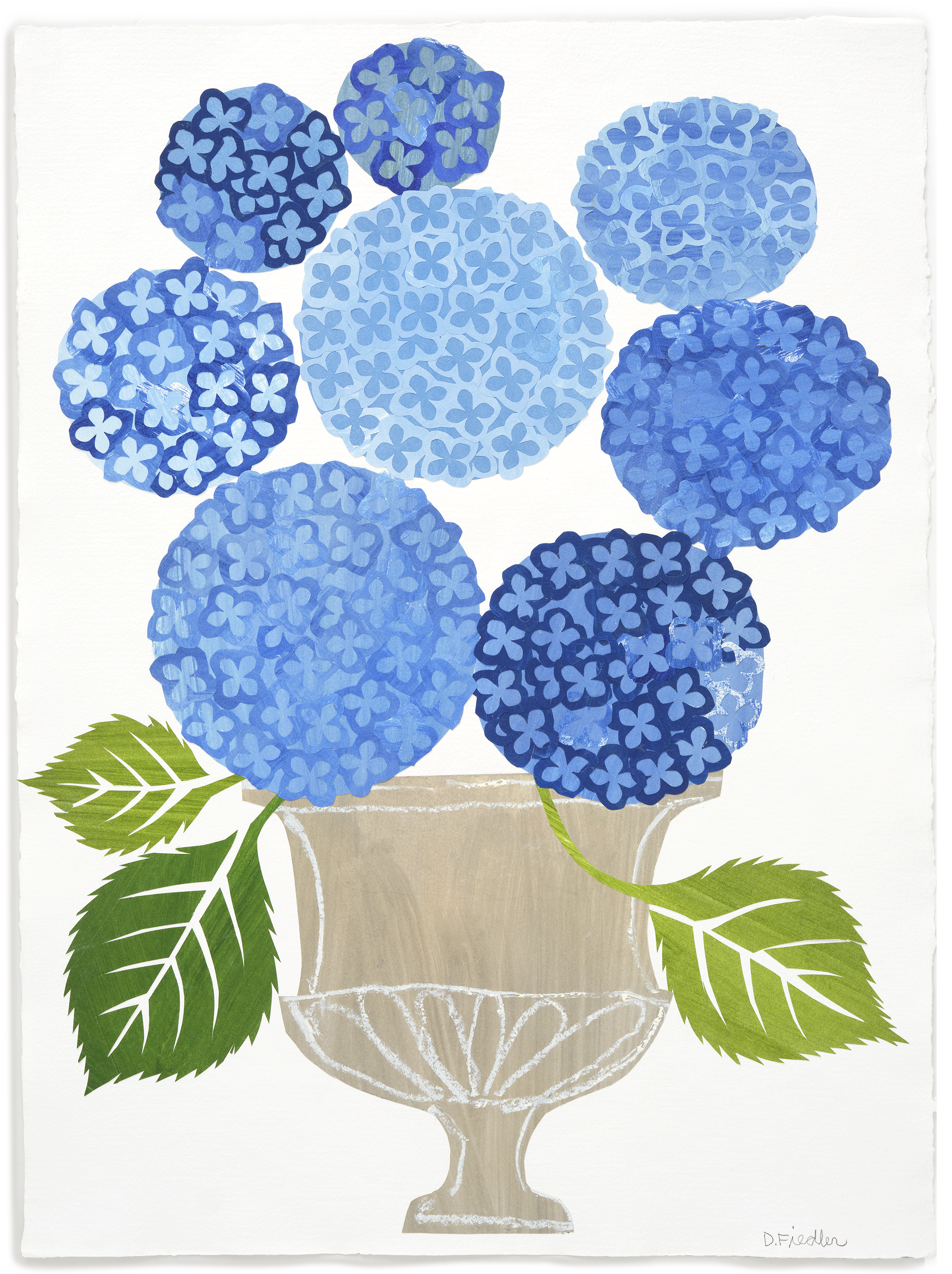 Denise Fiedler Floral Collage - 8 Blue Hydrangea in Grey Urn