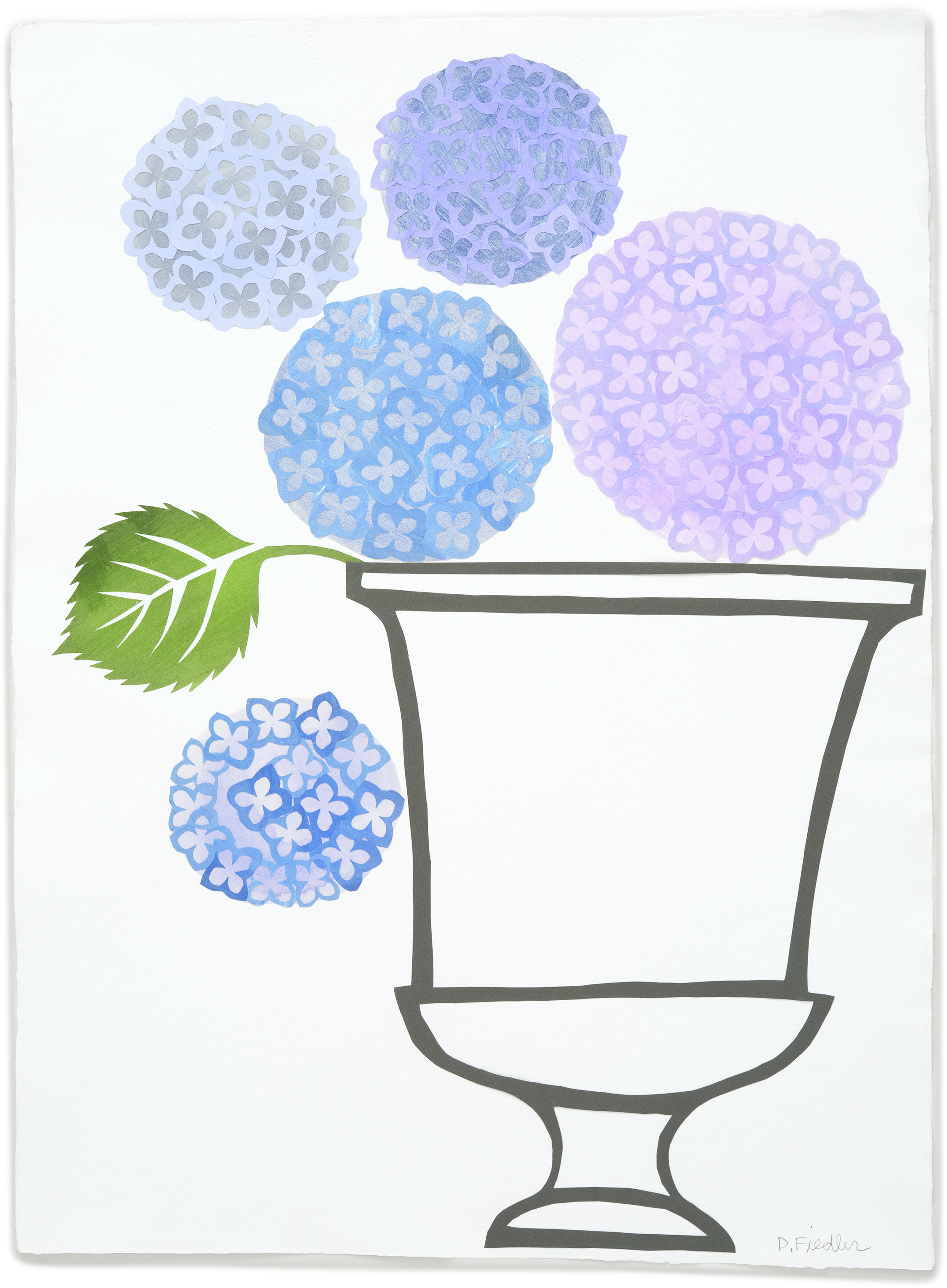 Denise Fiedler Floral Collage - Assorted Lilac & Indigo Hydrangea in Outline Urn