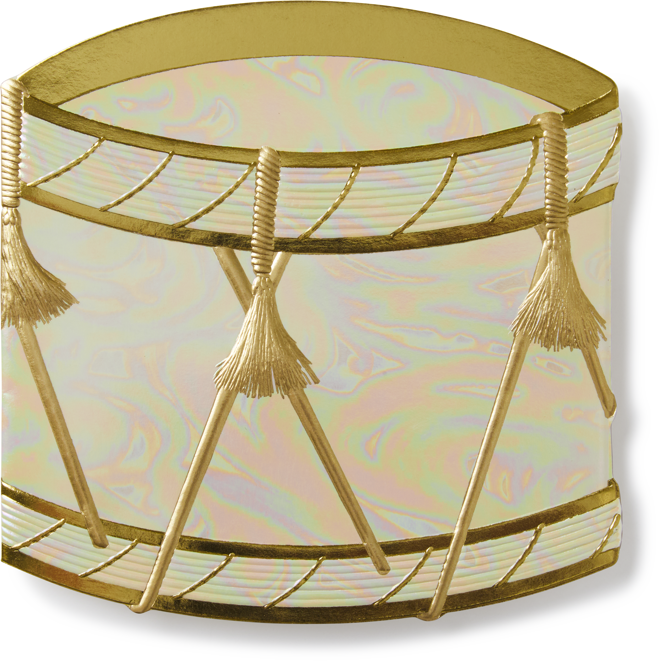 Put a little pa-rum-pum-pum-pum into your Christmas correspondence. The very best of retro foiling and engraving can be seen in this die-cut drum card, recalling the popular Christmas carol "The Little Drummer Boy".