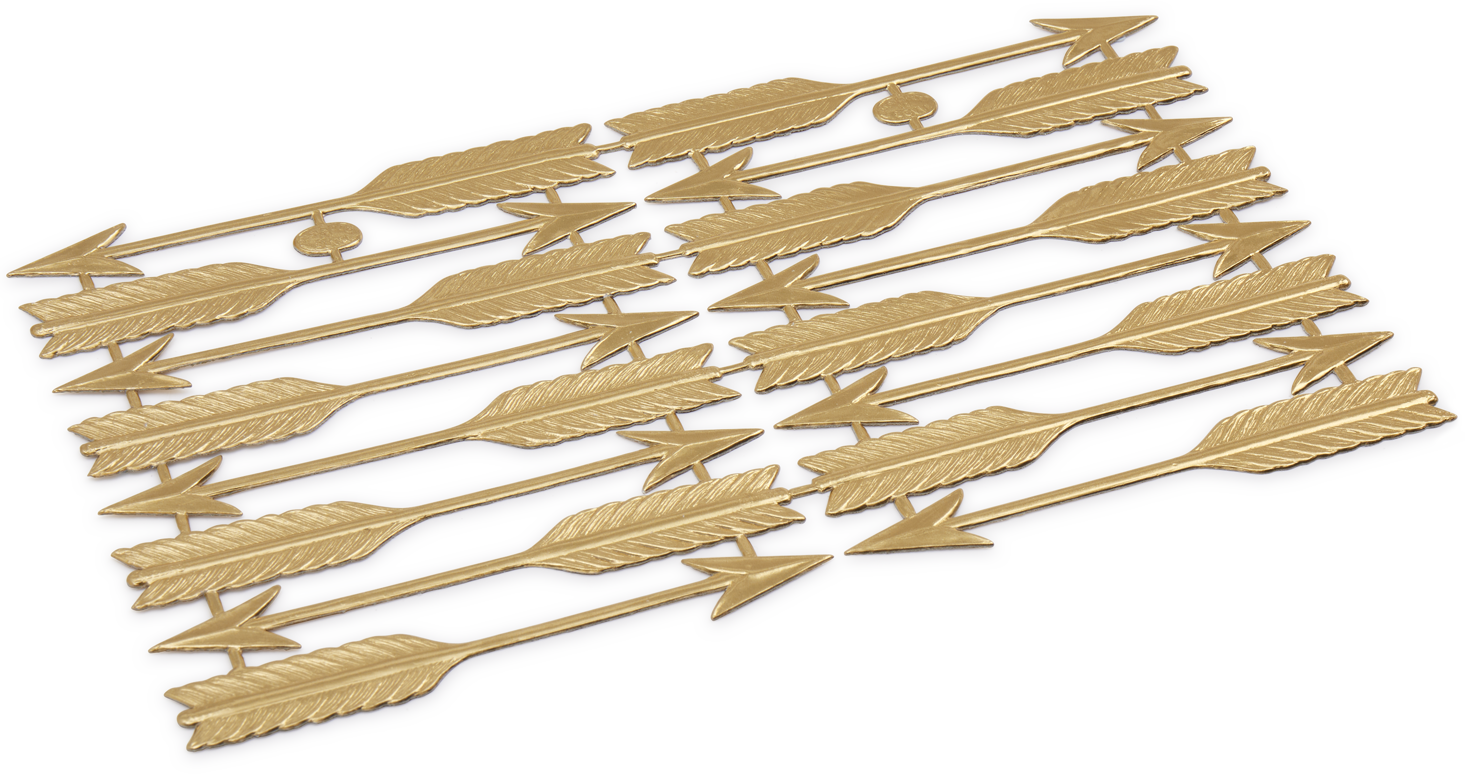 Enjoy these beautiful die-cut and embossed card scraps with arrows, made traditionally in Germany with metallic card. Use them as a retro embellishment for a gift wrap, stick some in your scrapbook or try your hand at making handmade cards and ornaments.