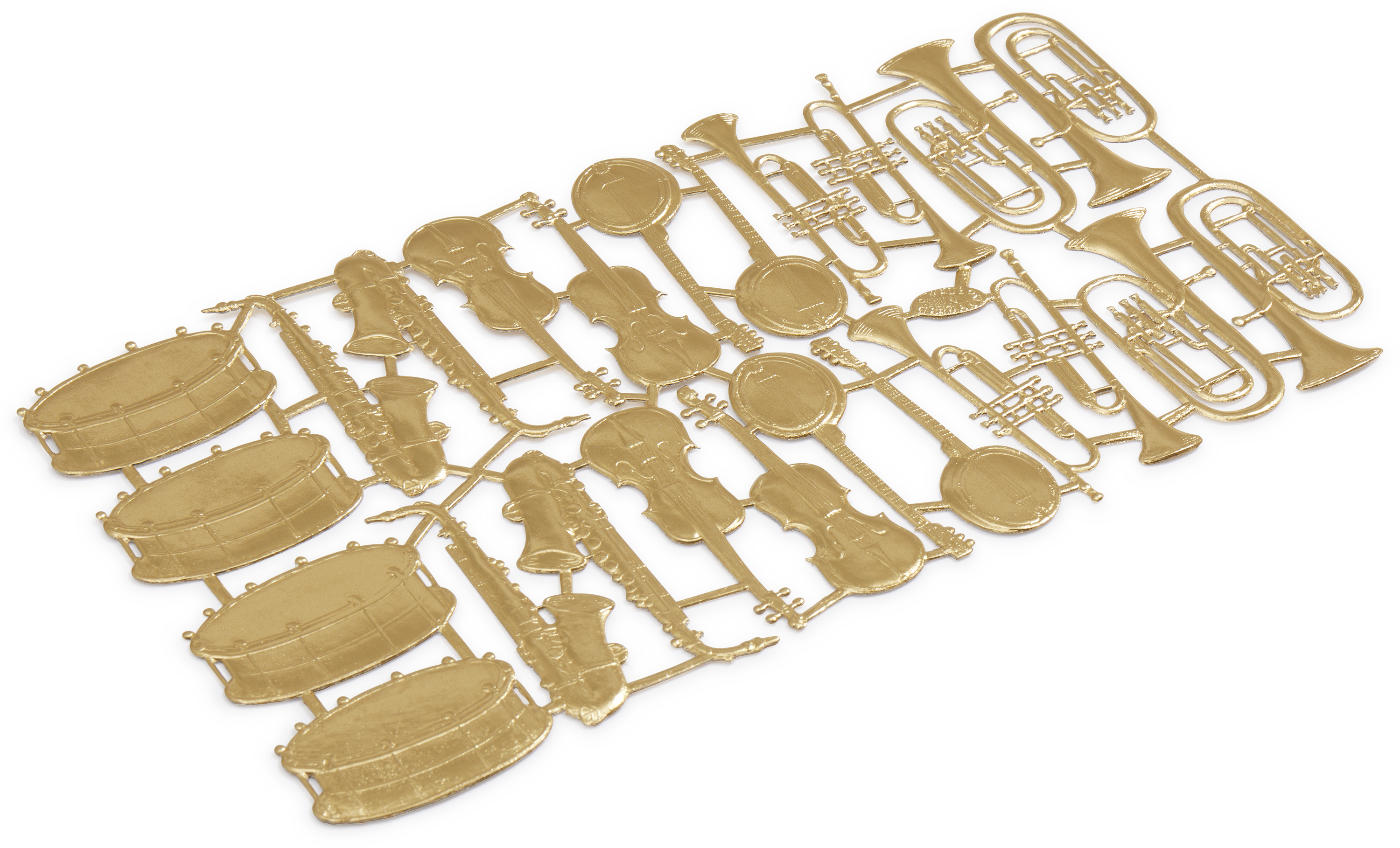 Enjoy these beautiful die-cut and embossed card scraps with instruments, made traditionally in Germany with metallic card. Use them as a retro embellishment for a gift wrap, stick some in your scrapbook or try your hand at making handmade cards and ornaments.