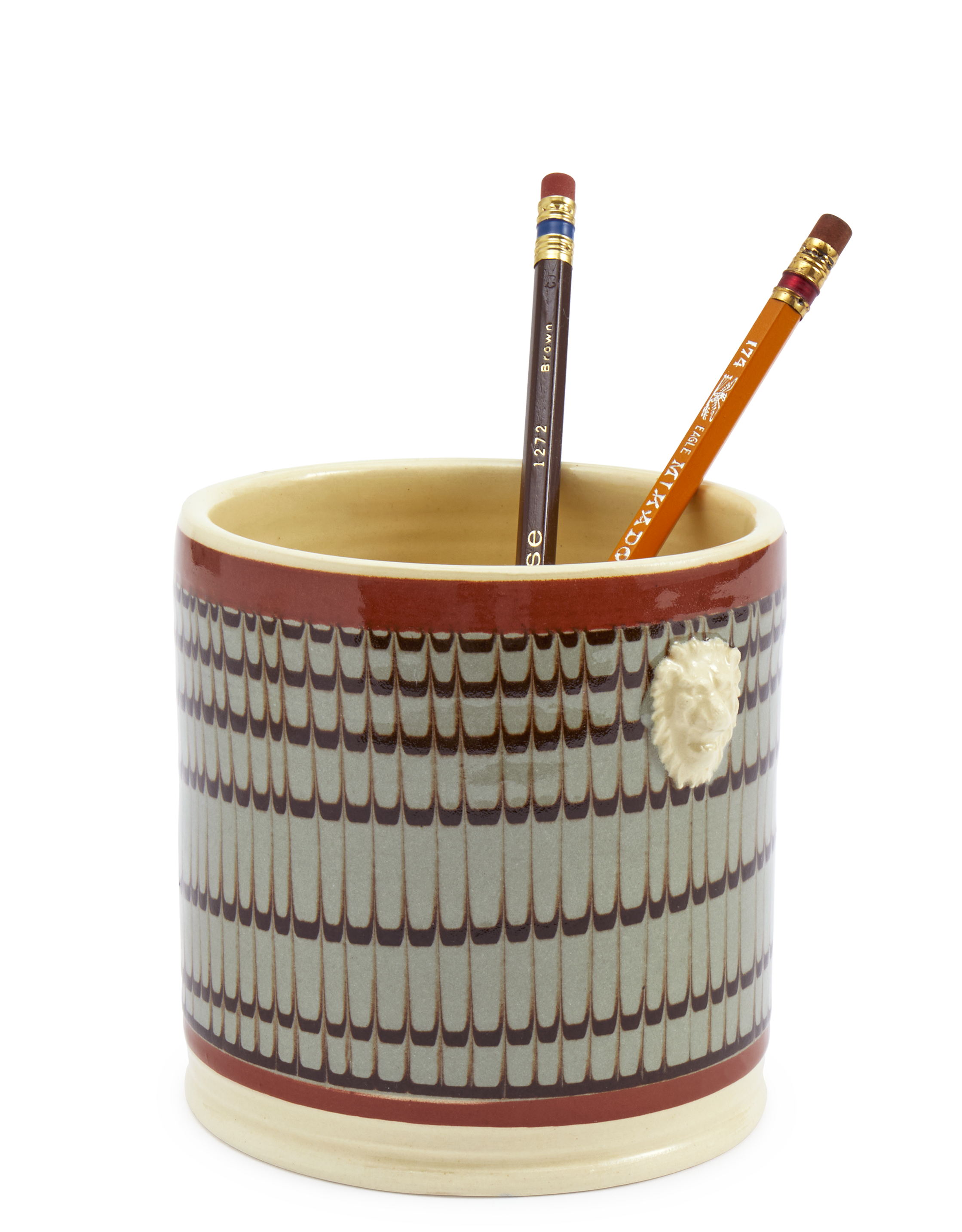 Duck Egg & Black Mochaware Ceramic Pen Pot, 'Comb'