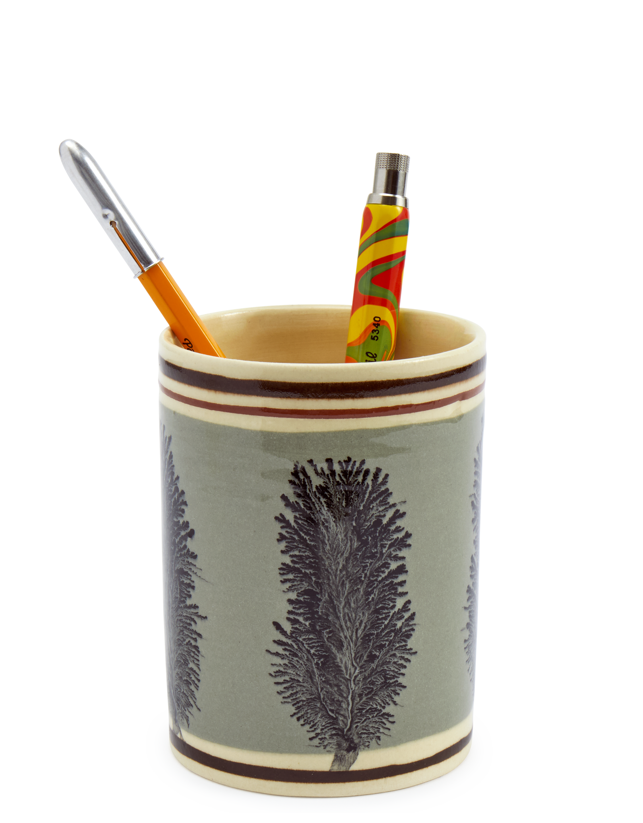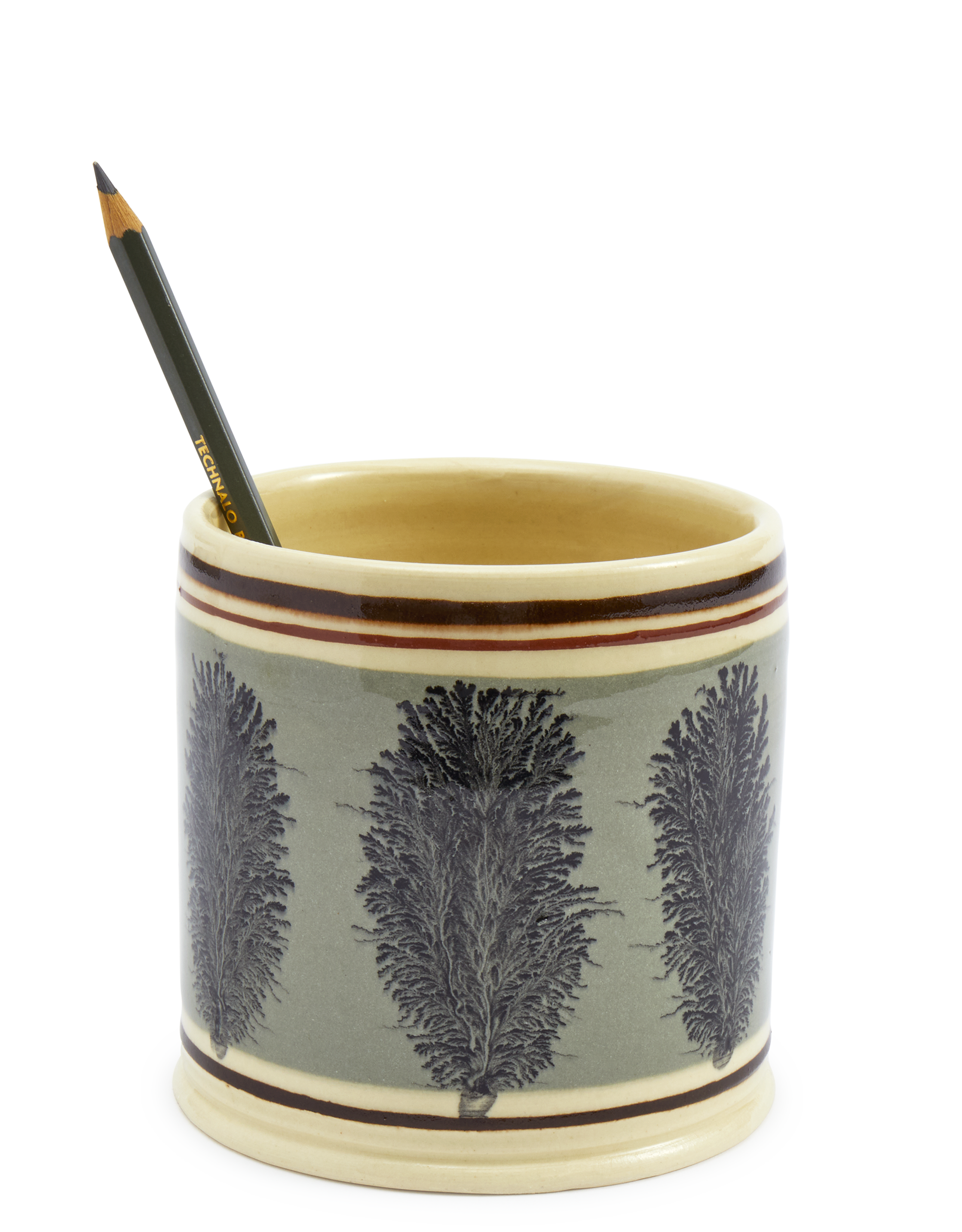 Duck Egg Mochaware Ceramic Pen Pot, 'Seaweed'
