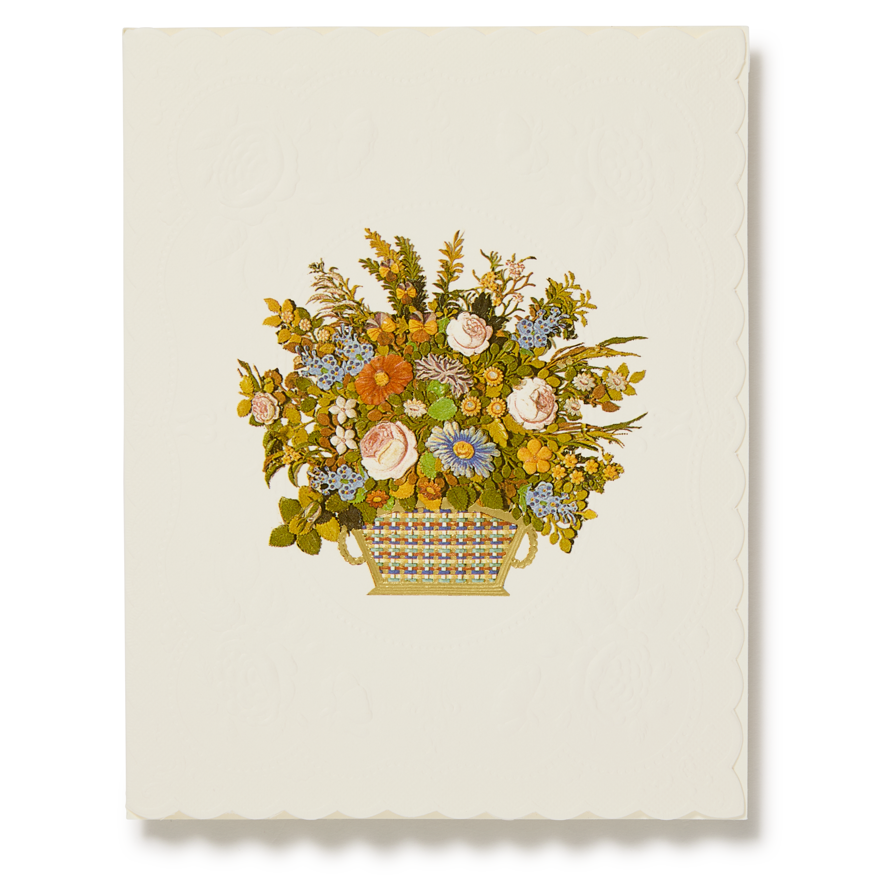 Enjoy this richly embossed greeting card featuring a doily design, dainty gold foiling and scalloped edges.