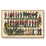A glimpse into the ceremonious pageantry of the early 20th century, these postcards depict a parade of His Majesty’s forces, soldiers, horses, and banners rendered in perfect miniature procession. Rather than scenes of battle, they celebrate the ritual and spectacle of uniformed order: the symmetry of ranks, the gleam of brass, and the theatre of empire at peace. Faithfully reproduced from the Choosing Keeping extensive collection of ephemera, these postcards have been carefully reprinted to match the distinctive colour palette and embossed texture of the originals, perfect for framing, sending, or collecting as curiosities.