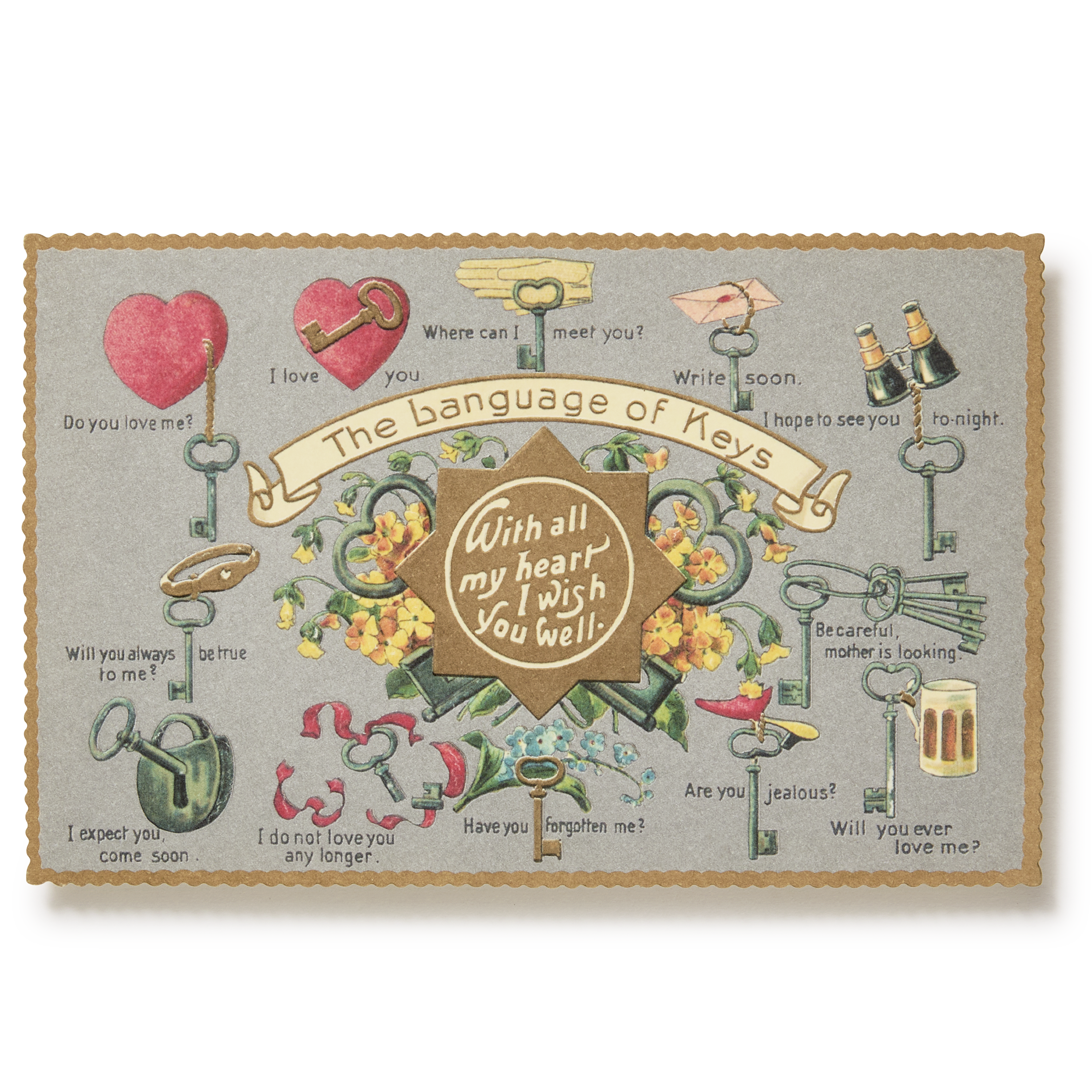 Part of a broader turn-of-the-century fascination with coded communication, the “Language of…” postcards, whether of flowers, colours, or sentiments, translated emotion into symbol. Produced in Germany at the height of postcard culture, they offered a way to express affection, longing, or hope within the conventions of polite society. Taken from the Choosing Keeping extensive collection of ephemera, we have worked carefully to match the distinctive colour palette and embossed texture of the originals - perfect for sending as a small note, framing as part of a gallery wall, or accompanying a gift.